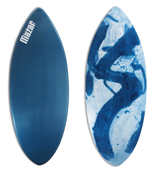 設計の力点はオンボードの確実性と水面での安定感。そしてはじかれにくいターンのコントロール性能。デッキ、ボトム共にそれぞれ16オンスのE-glassを積層し高い耐久性と衝撃強度を持たせた。適切なフレックス・浮力・弾性を兼ね備え、ライダーの技能に応じたレスポンスを発揮するオールラウンドなスキムボード。