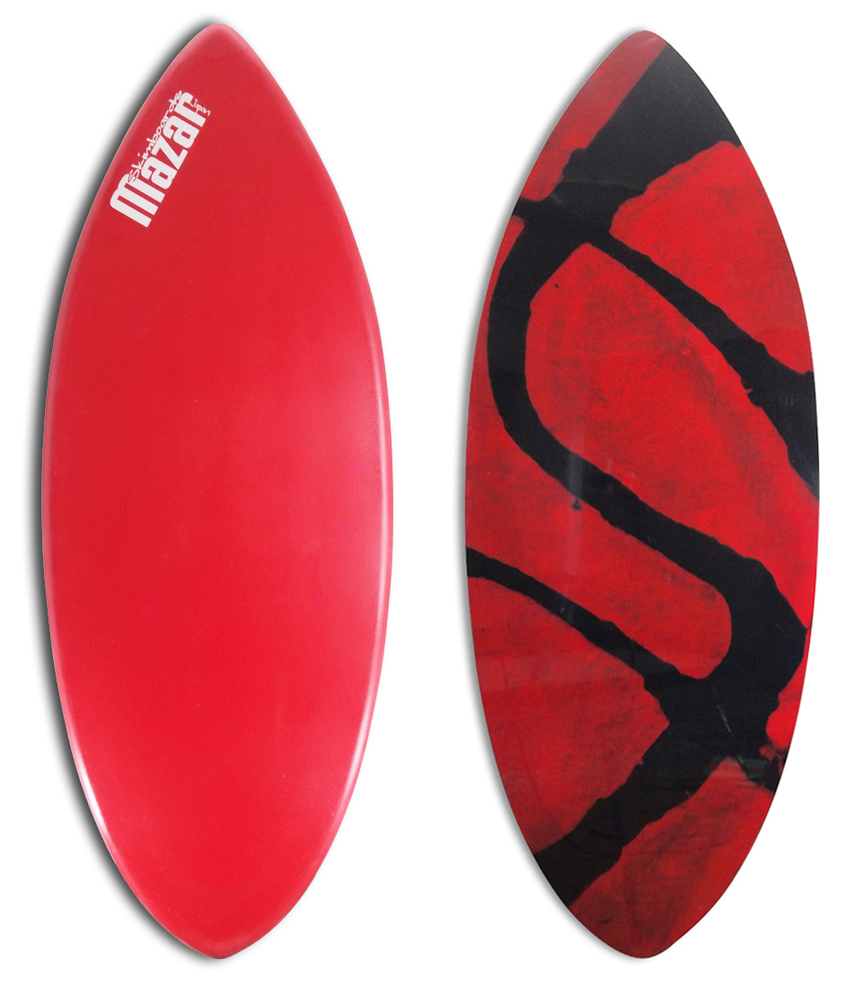設計の力点はオンボードの確実性と水面での安定感。そしてはじかれにくいターンのコントロール性能。デッキ、ボトム共にそれぞれ16オンスのE-glassを積層し高い耐久性と衝撃強度を持たせた。適切なフレックス・浮力・弾性を兼ね備え、ライダーの技能に応じたレスポンスを発揮するオールラウンドなスキムボード。