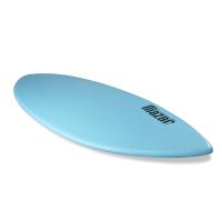 設計の力点はオンボードの確実性と水面での安定感。そしてはじかれにくいターンのコントロール性能。デッキ、ボトム共にそれぞれ16オンスのE-glassを積層し高い耐久性と衝撃強度を持たせた。適切なフレックス・浮力・弾性を兼ね備え、ライダーの技能に応じたレスポンスを発揮するオールラウンドなスキムボード。