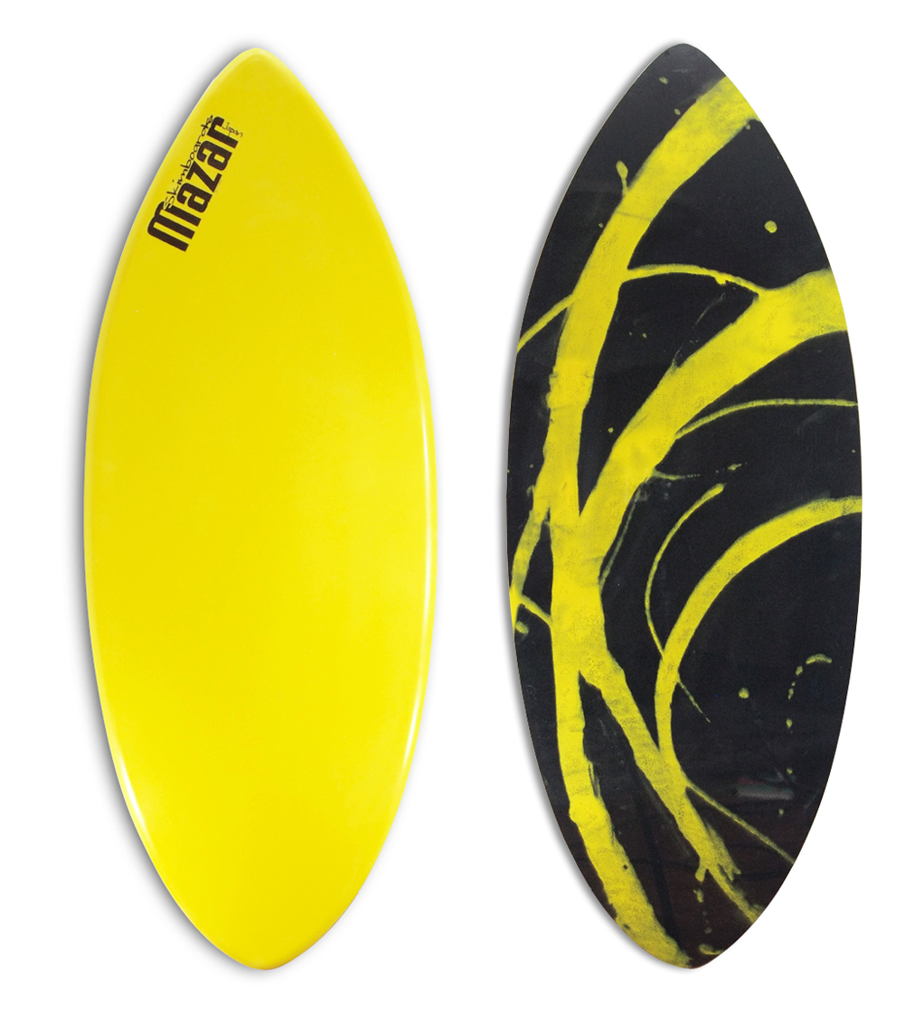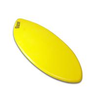 設計の力点はオンボードの確実性と水面での安定感。そしてはじかれにくいターンのコントロール性能。デッキ、ボトム共にそれぞれ16オンスのE-glassを積層し高い耐久性と衝撃強度を持たせた。適切なフレックス・浮力・弾性を兼ね備え、ライダーの技能に応じたレスポンスを発揮するオールラウンドなスキムボード。