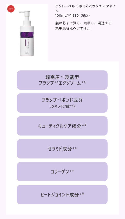| 商品名 | アンレーベル ラボ EX バウンス ヘアオイル |