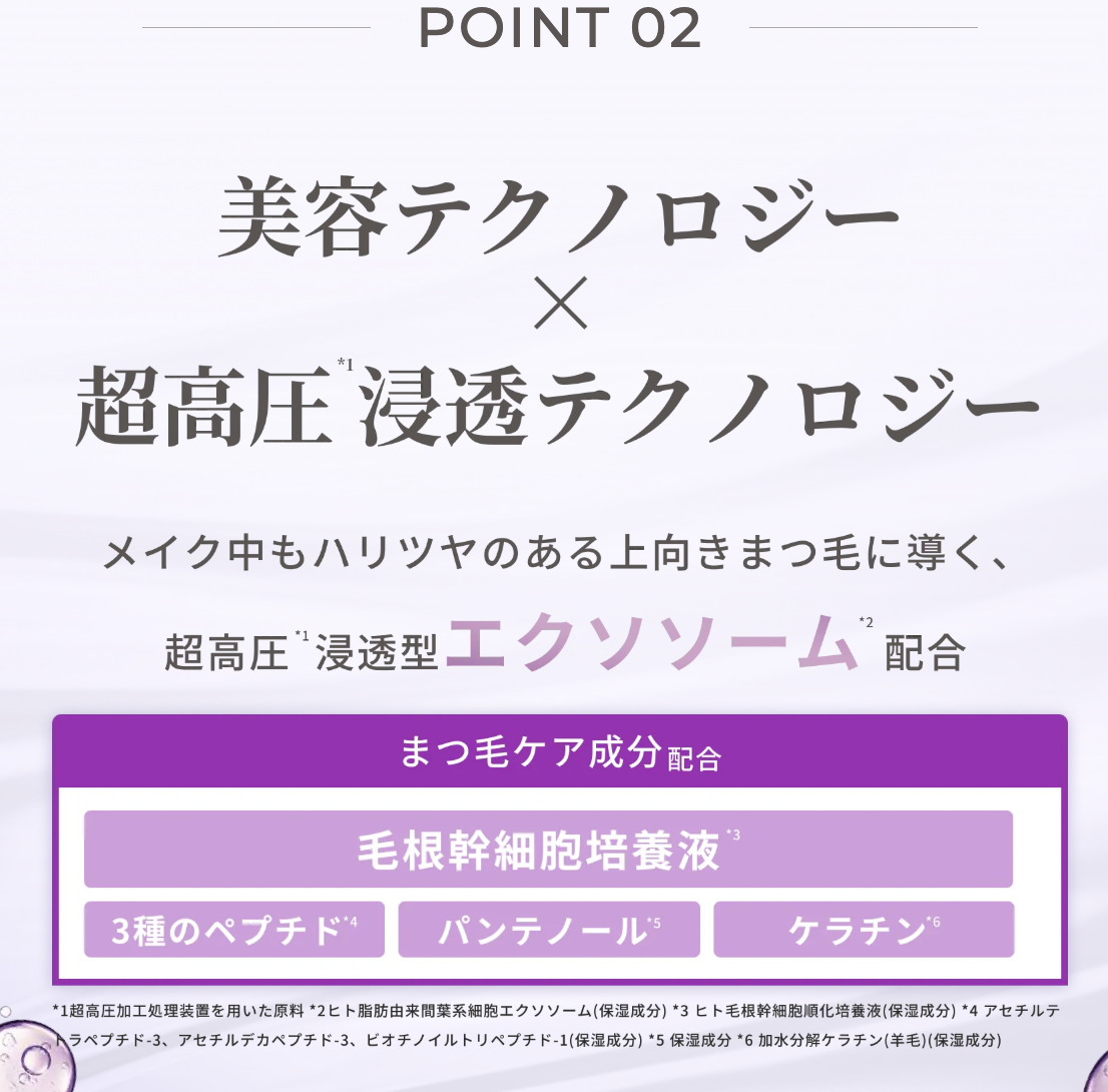 | 成分 | 【全成分】水、(スチレン/アクリレーツ)コポリマーアンモニウム、カルナウバロウ、ミツロウ、ステアリン酸、ステアリン酸水添ヒマシ油、タルク、ベヘニルアルコール、ペンチレングリコール、ポリソルベート60、ナイロン-6、ステアリン酸グリセリル、キャンデリラロウエキス、シリカ、ヒト脂肪由来間葉系細胞エクソソーム、ヒト毛根幹細胞順化培養液、アセチルテトラペプチド-3、アセチルデカペプチド-3、ビオチノイルトリペプチド-1、パンテノール、加水分解ケラチン(羊毛)、ピロリジニルジアミノピリミジンオキシド、ジラウラミドグルタミドリシンNa、加水分解エラスチン、加水分解シルク、アカツメクサ花エキス、水添ポリイソブテン、グリセリン、BG、PVP、デキストラン、1,2-ヘキサンジオール、ヒドロキシエチルセルロース、シメチコン、ラウレス硫酸Na、オレス硫酸Na、EDTA-2Na、デヒドロ酢酸Na、AMP、フェノキシエタノール、酸化チタン、酸化鉄 |
