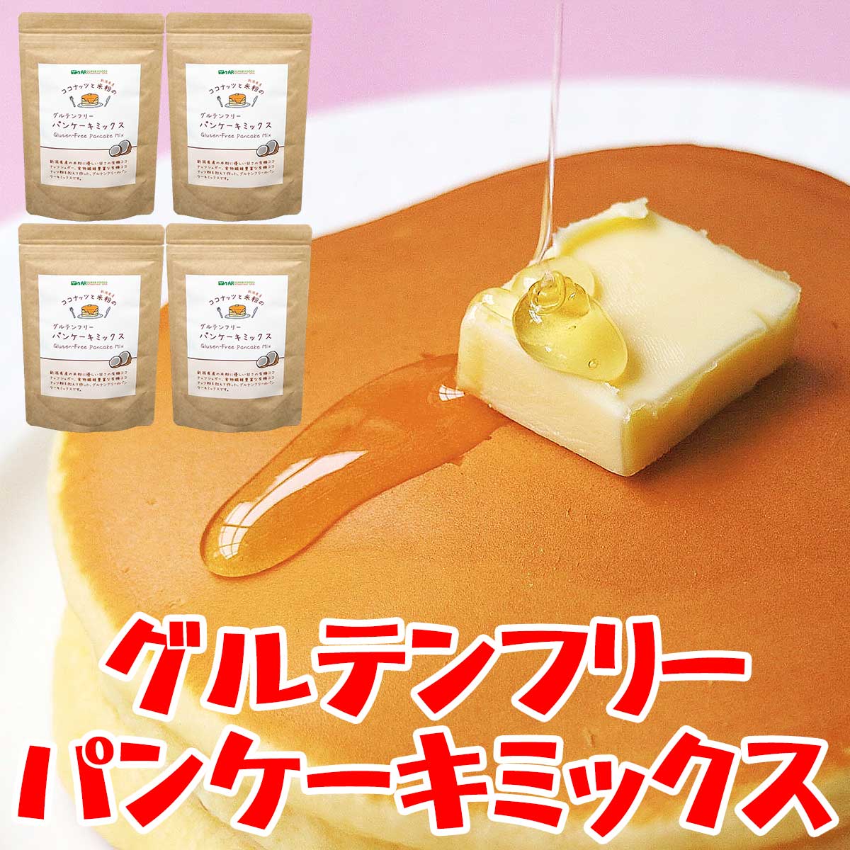 小麦粉や白砂糖を使用していないグルテンフリーのホットケーキミックスです。新潟県産米粉と厳しい基準をクリアしたオーガニックのココナッツフラワーとココナッツシュガーを使用しており、グルテンやGI値が気になる健康を意識した方、ダイエット中の方でも安心してお召し上がりいただけます。
