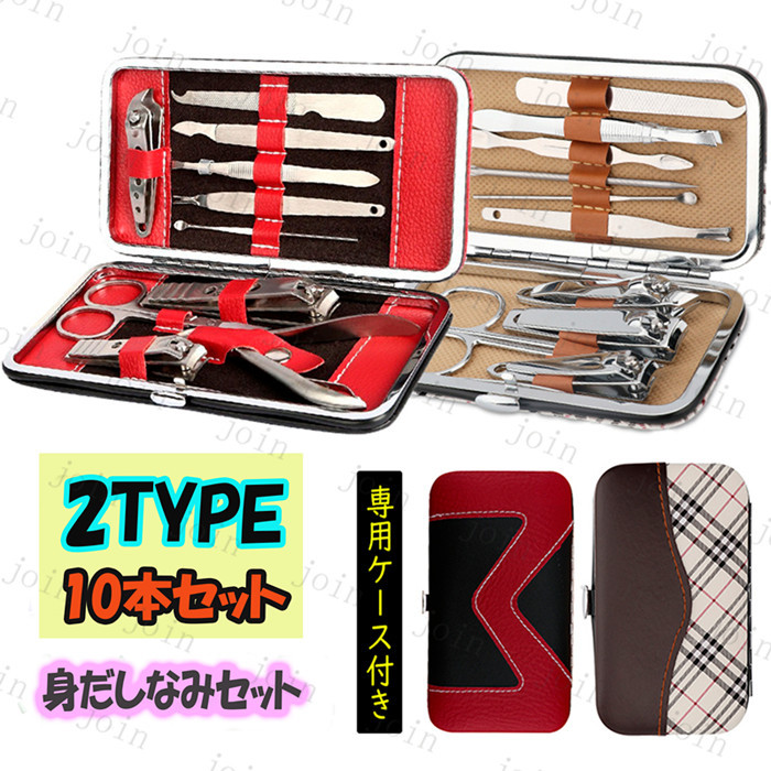 身だしなみセット 日本国内当日発送 10本セット 眉用ハサミ 毛抜き ステンレス製 ネイルケア 爪切り 甘皮ケア 甘皮取り 多機能ケース 旅行 ケース付き #br63