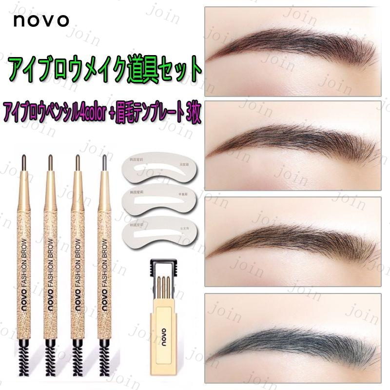 4colorセット アイブロウペンシル アイブロウブラシ 韓国コスメ 眉毛用 メイク道具 3種類 メイクアップ道具 眉毛テンプレート #cs152