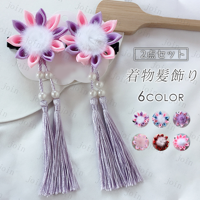 髪飾り 2点セット 日本国内当日発送 クリップ 和装 浴衣 成人式 ヘアアクセサリー 髪留め 七五三 卒業式 入学式 子供 振袖 袴 着物 つまみ細工 ぶら飾り #h35