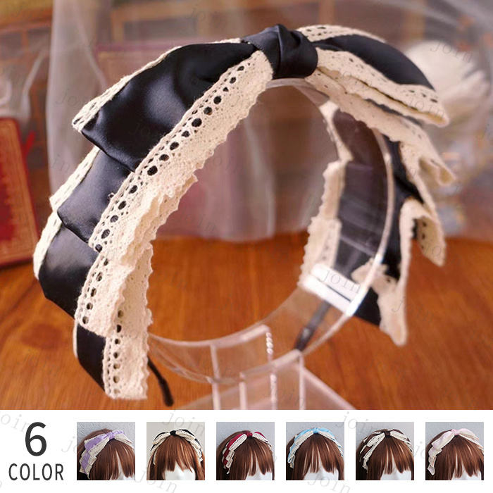 カチューシャ リボン 日本国内当日発送 6color ロリータファッション かわいい ヘアアクセサリー ゴスロリ 髪飾り レディース メイド レース #h58