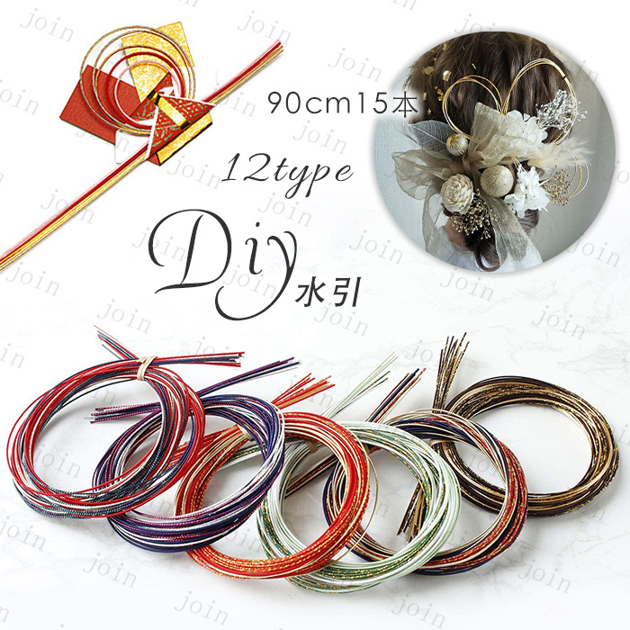 水引 髪飾り 材料 日本国内当日発送 アクセサリー 90cm×15本 手芸 素材 水引細工 ゴールド 金 金銀 水引き ヘッドパーツ 和装 紐 ヘアアレンジ ヘッドドレス#y7