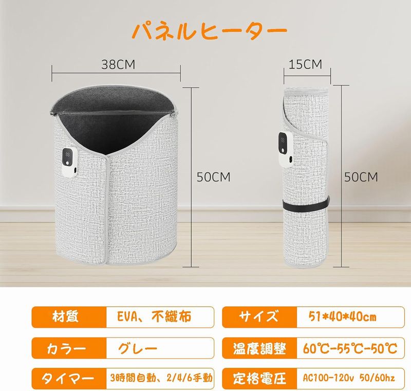 電源を入れてすぐに全方位から包み込むような暖かさになります。