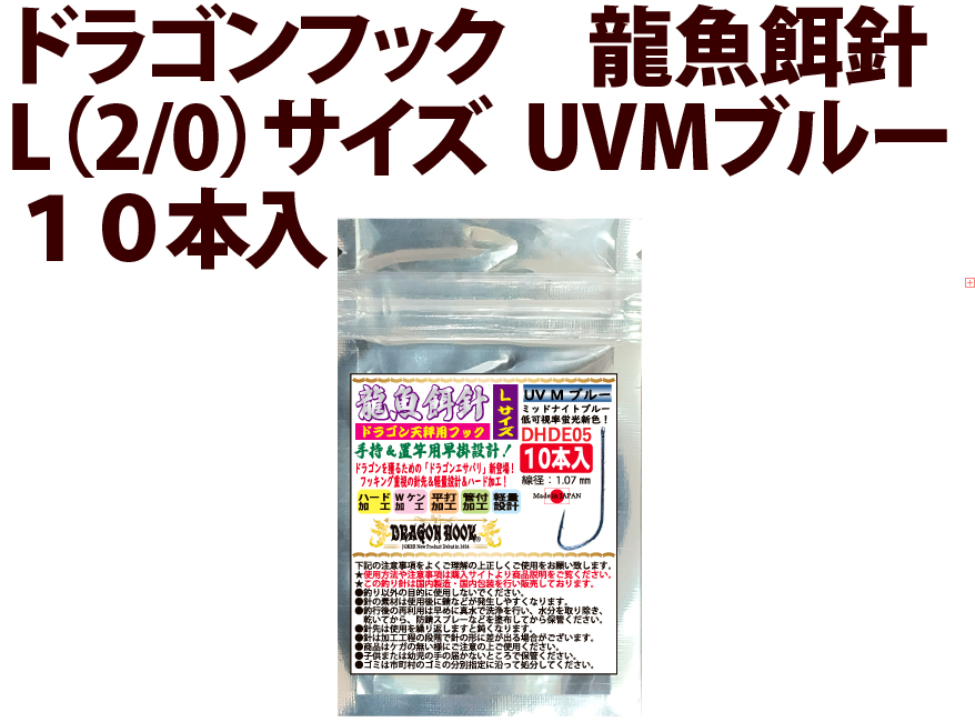 ドラゴンフック 龍魚餌針 L(2/0)サイズ UVMブルー 10本入