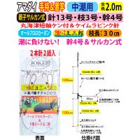 潮が大潮や速い時には「速潮用」で流れが速い時に浮き上がり防止で2段テーパー仕掛け+太ハリスで比重をアップした設計です。
