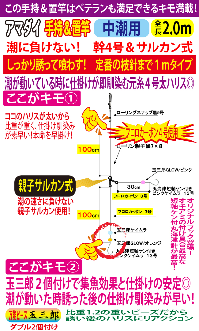 遅潮用・中潮用・早潮用のコンディションに合わせた設計でアマダイを攻めて攻めて攻めまくってください。