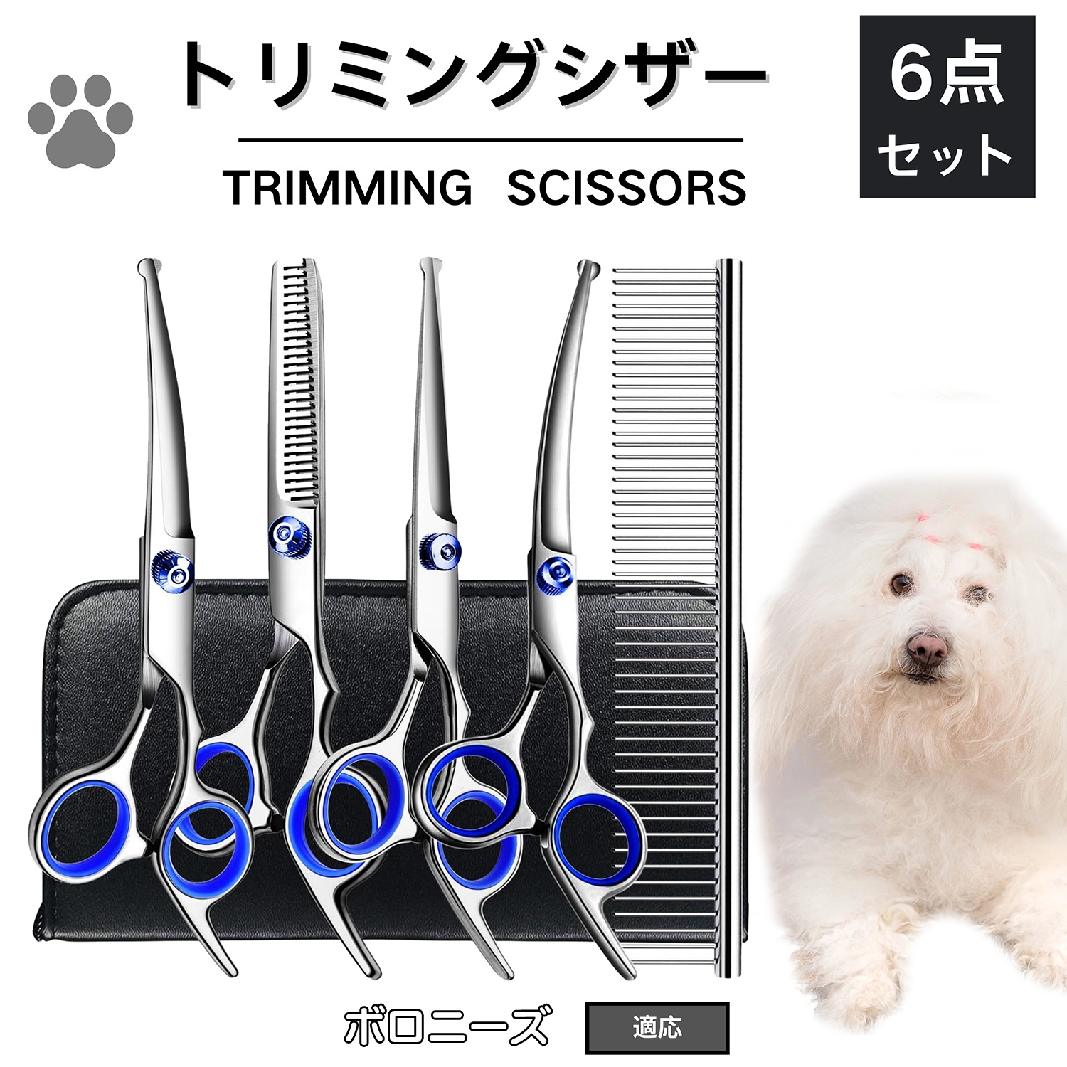 トリミング ハサミ はさみ 6点セット トリミングシザー スキバサミ トリミング トリマー コーム ボロニーズ犬種 ボロニーズ