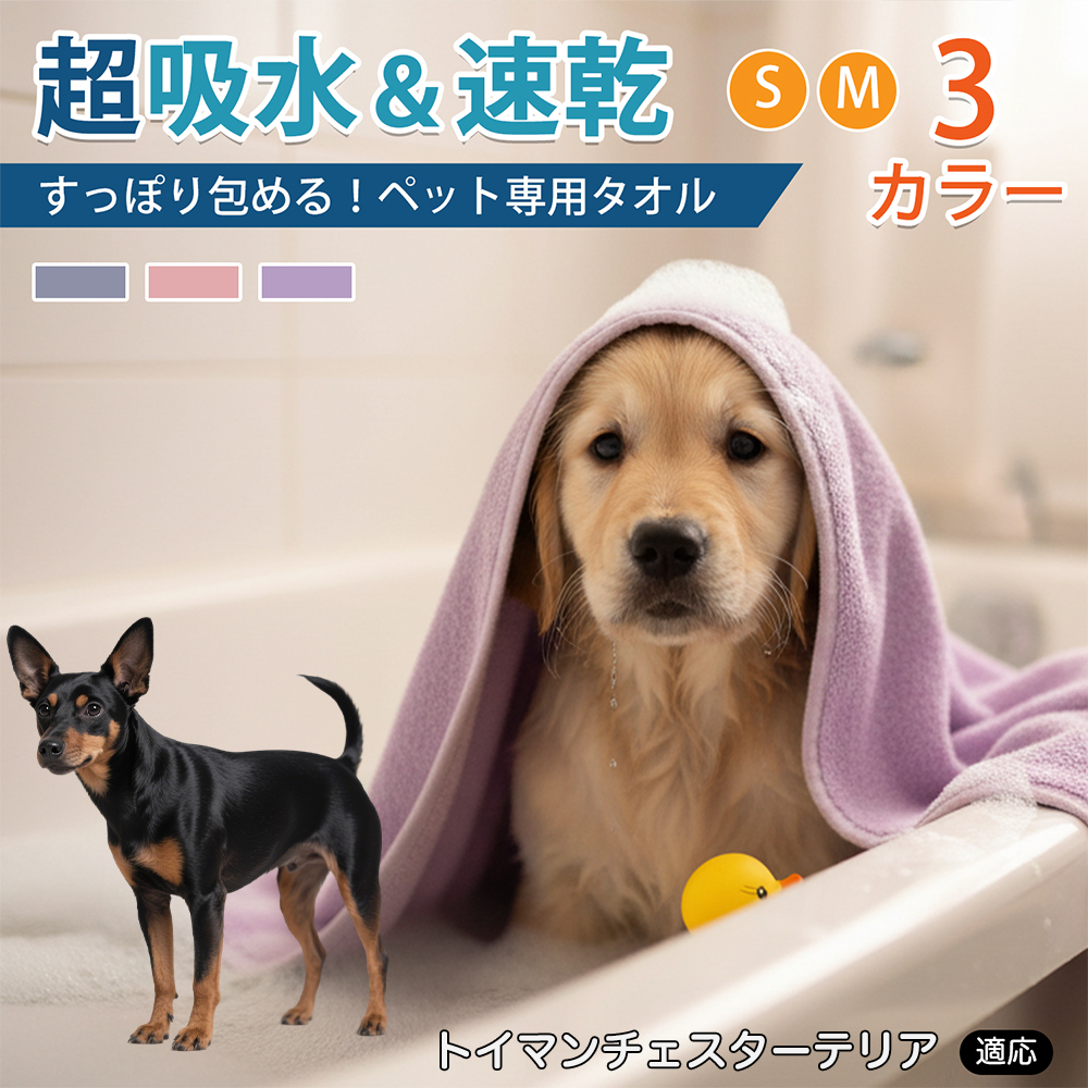 適応ペット トイマンチェスターテリア犬 トイマンチェ 商品名 ペットタオル 吸水タオル