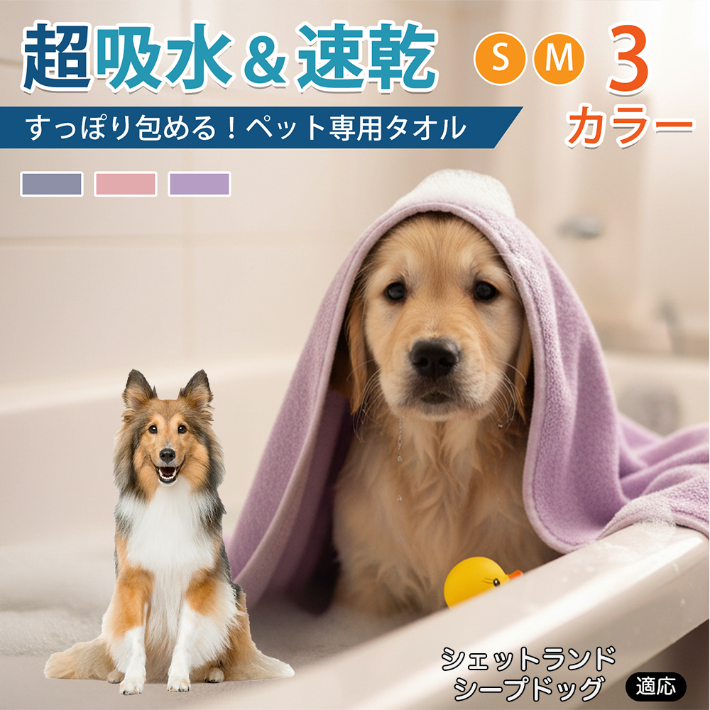 シェットランドシープドッグ犬 シェルティ ペットタオル 超吸水 速乾 マイクロファイバー 大判 犬猫用 バスタオル 75×150cm 75×160cm 散歩後対応