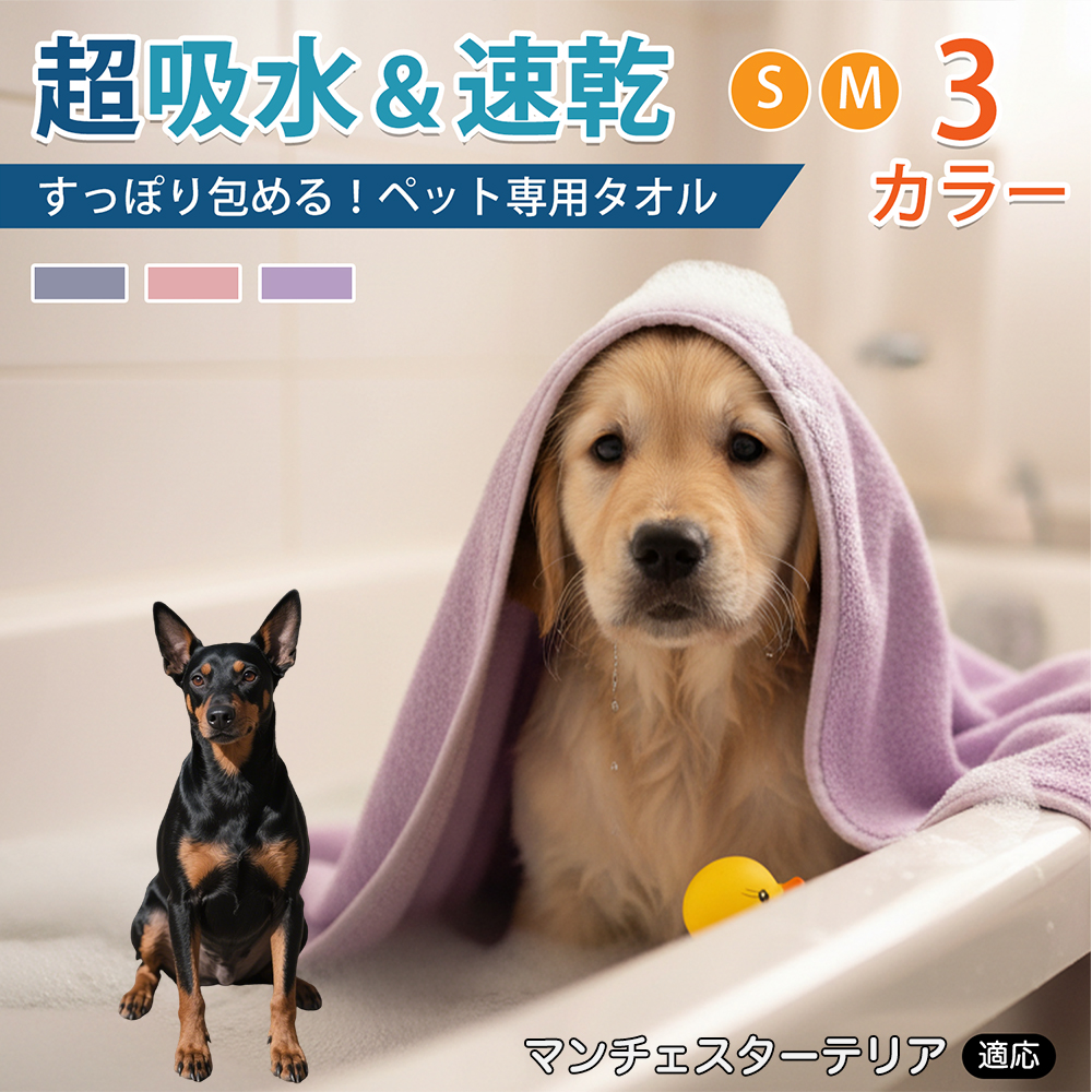 マンチェスターテリア犬 マンチェ ペットタオル 超吸水 速乾 マイクロファイバー 大判 犬猫用 バスタオル 75×150cm 75×160cm 散歩後対応