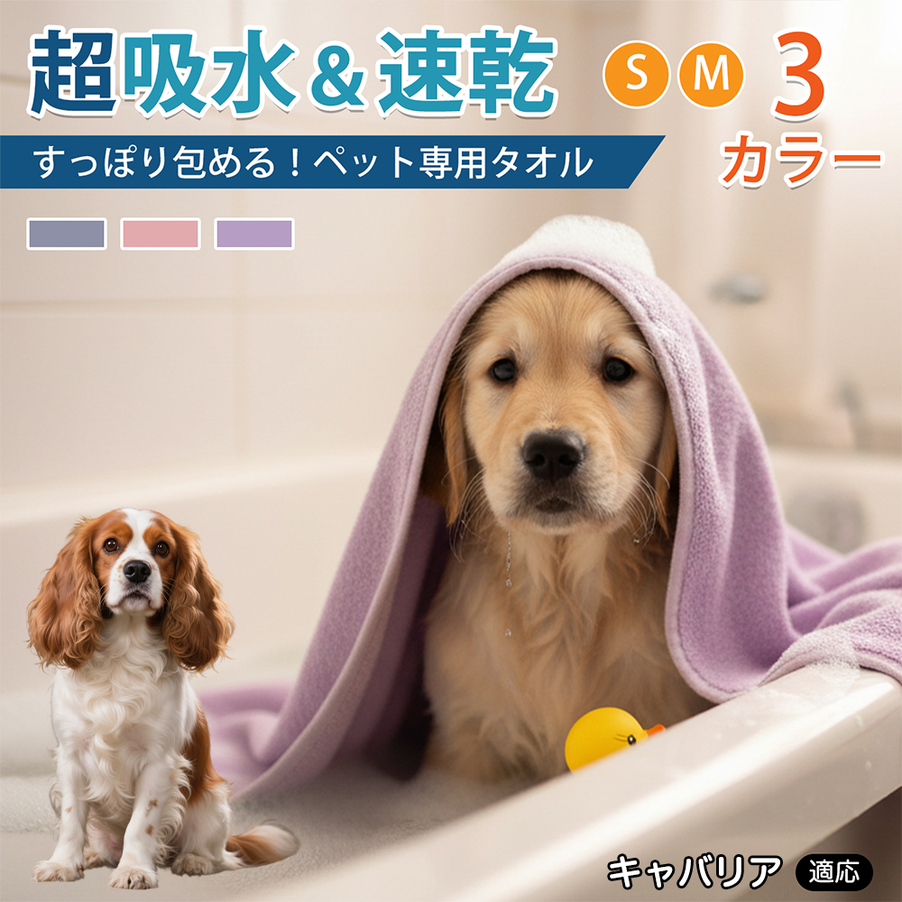 適応ペット キャバリアキングチャールズスパニエル犬 商品名 ペットタオル 吸水タオル