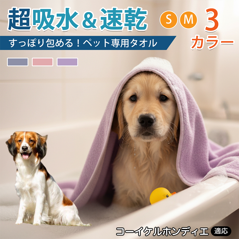 商品説明 シャンプー後や散歩後の水分拭き取りに使える大判タオル。やわらかいマイクロファイバーで全身を拭きやすく、折りたたみ収納可。ループ付きで掛けて乾かせます。