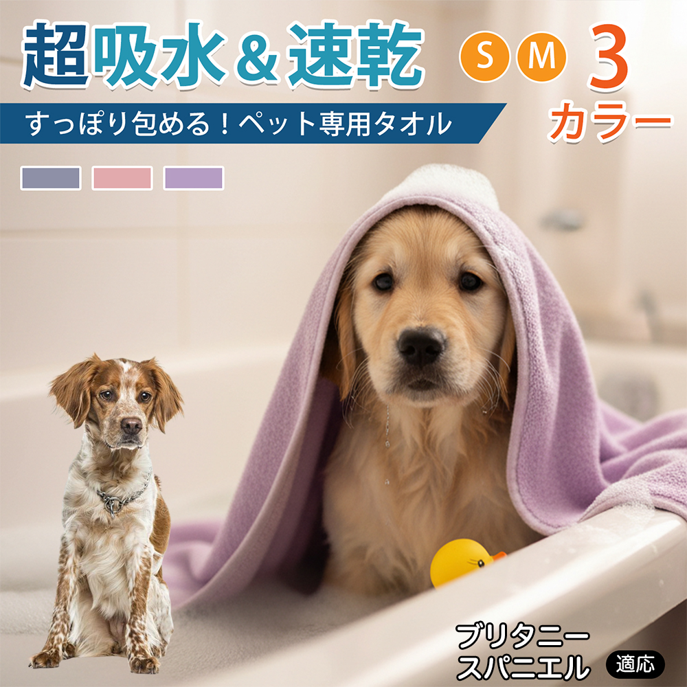 ブリタニースパニエル犬 ブリタニー ペットタオル 超吸水 速乾 マイクロファイバー 大判 犬猫用 バスタオル 75×150cm 75×160cm 散歩後対応