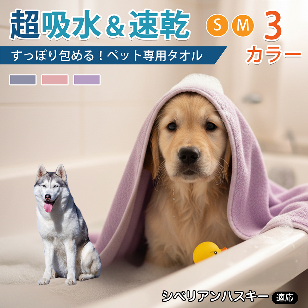 適応ペット シベリアンハスキー犬 ハスキー 商品名 ペットタオル 吸水タオル