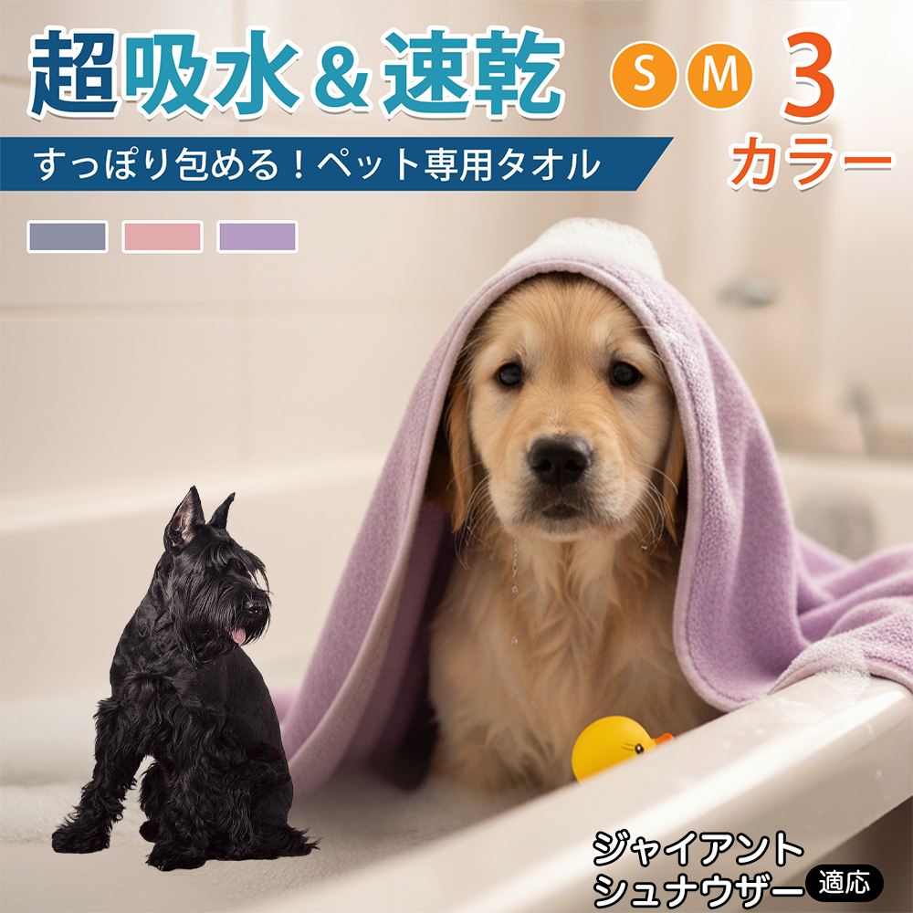 ジャイアントシュナウザー犬 ジャイアントシュナ ペットタオル 超吸水 速乾 マイクロファイバー 大判 犬猫用 バスタオル 75×150cm 75×160cm 散歩後対応