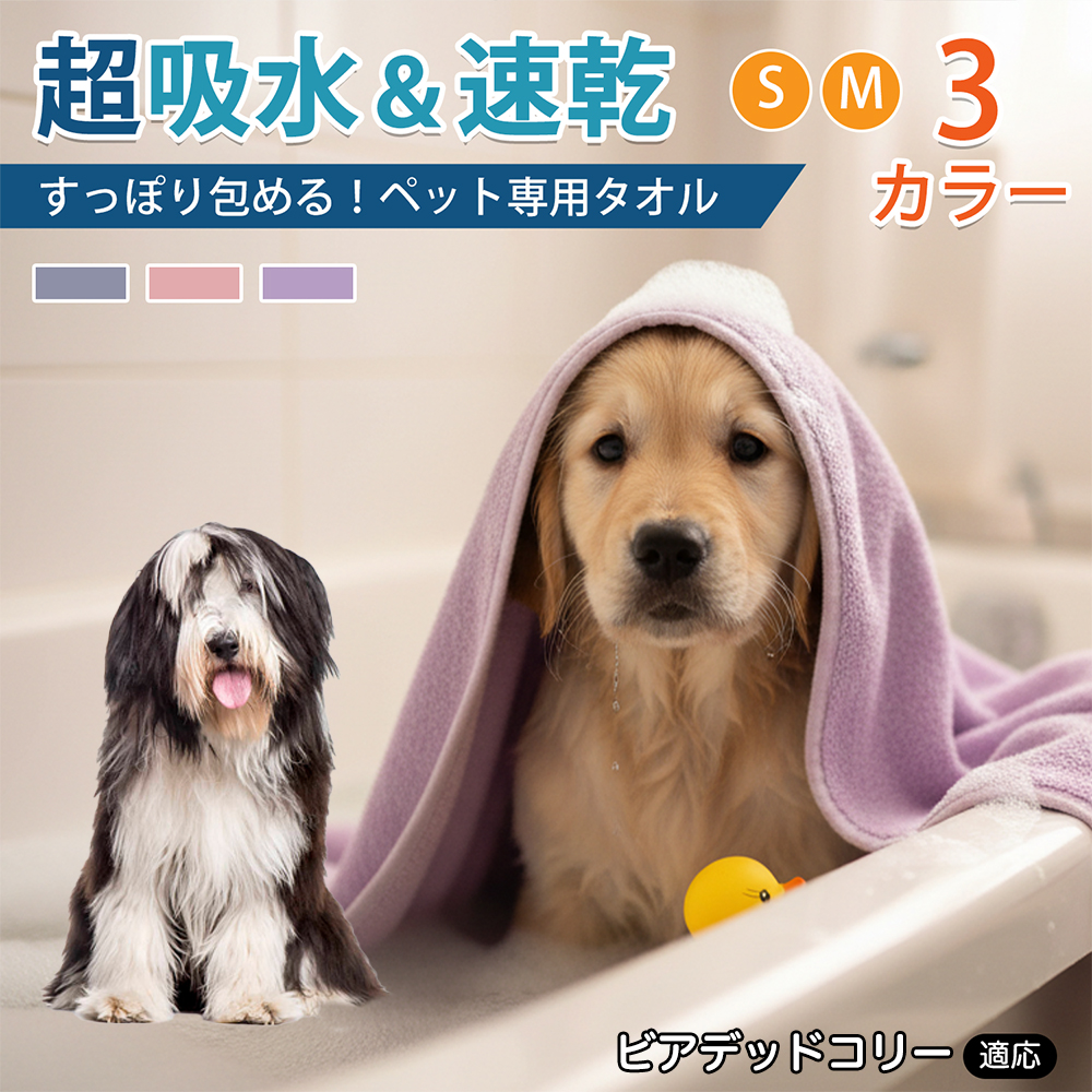 適応ペット ビアデッドコリー犬 ビアデッド 商品名 ペットタオル 吸水タオル