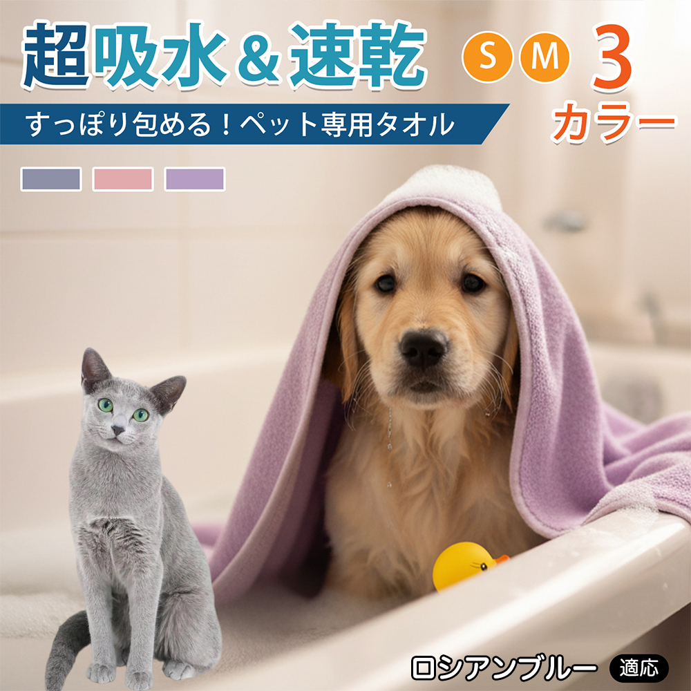 適応ペット ロシアンブルー猫 ロシアン 商品名 ペットタオル 吸水タオル