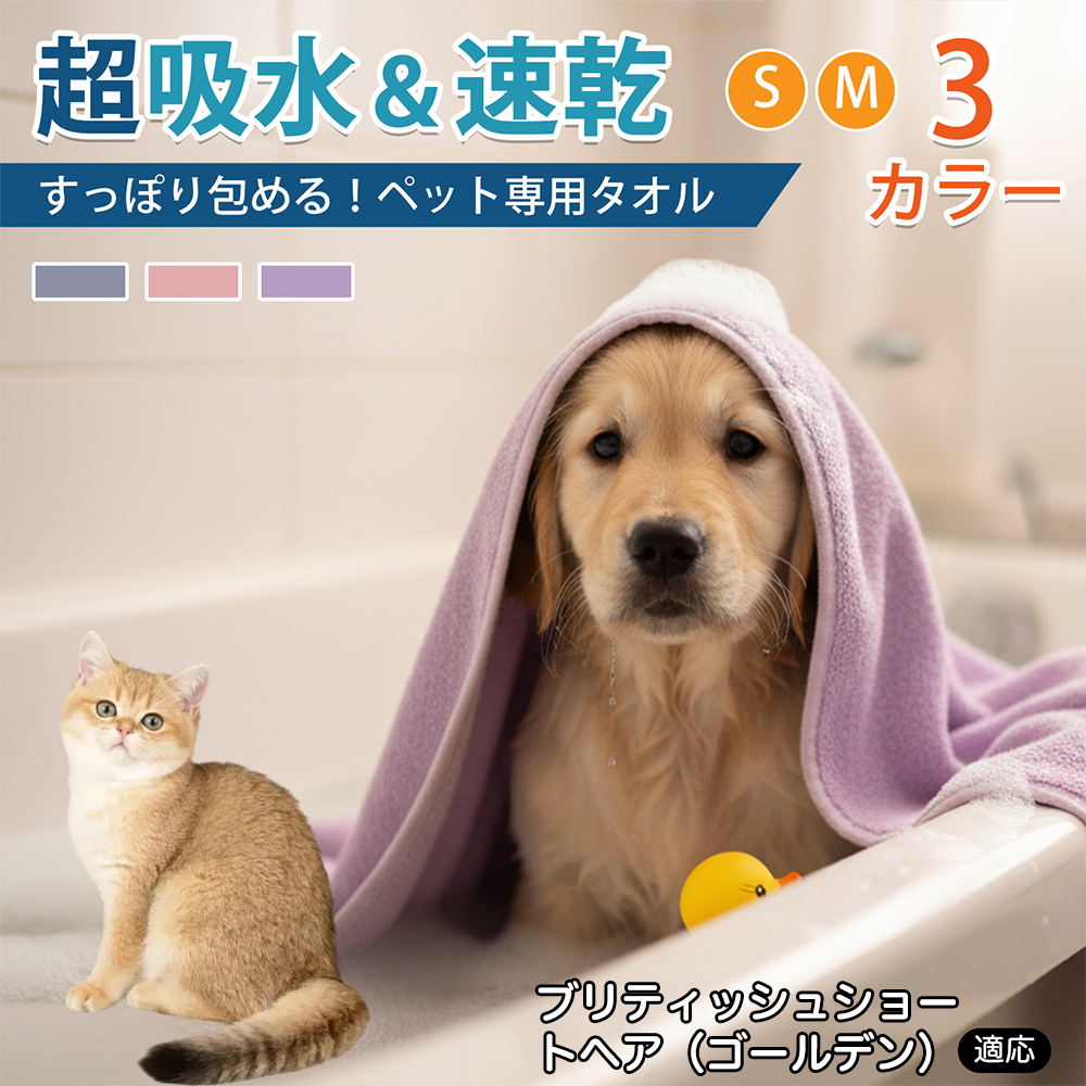 商品説明 シャンプー後や散歩後の水分拭き取りに使える大判タオル。やわらかいマイクロファイバーで全身を拭きやすく、折りたたみ収納可。ループ付きで掛けて乾かせます。