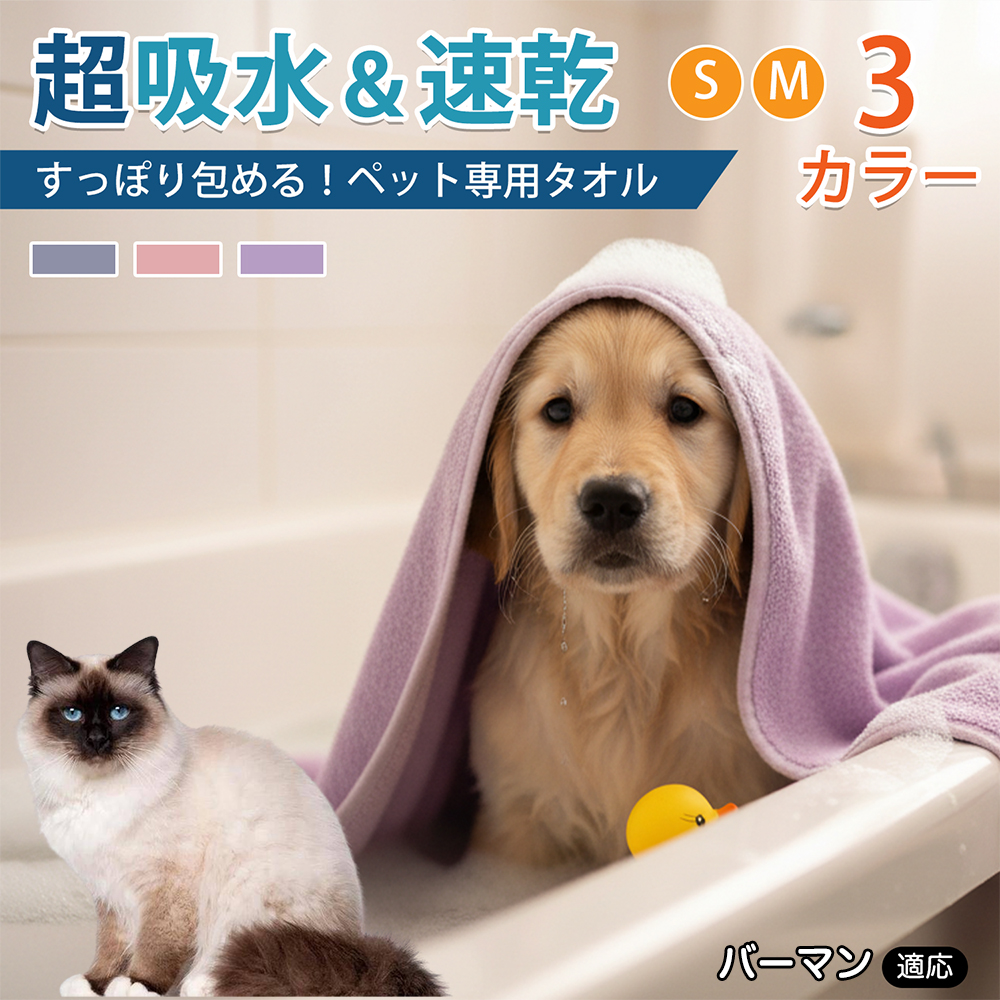 適応ペット バーマン猫種 バーマン 商品名 ペットタオル 吸水タオル