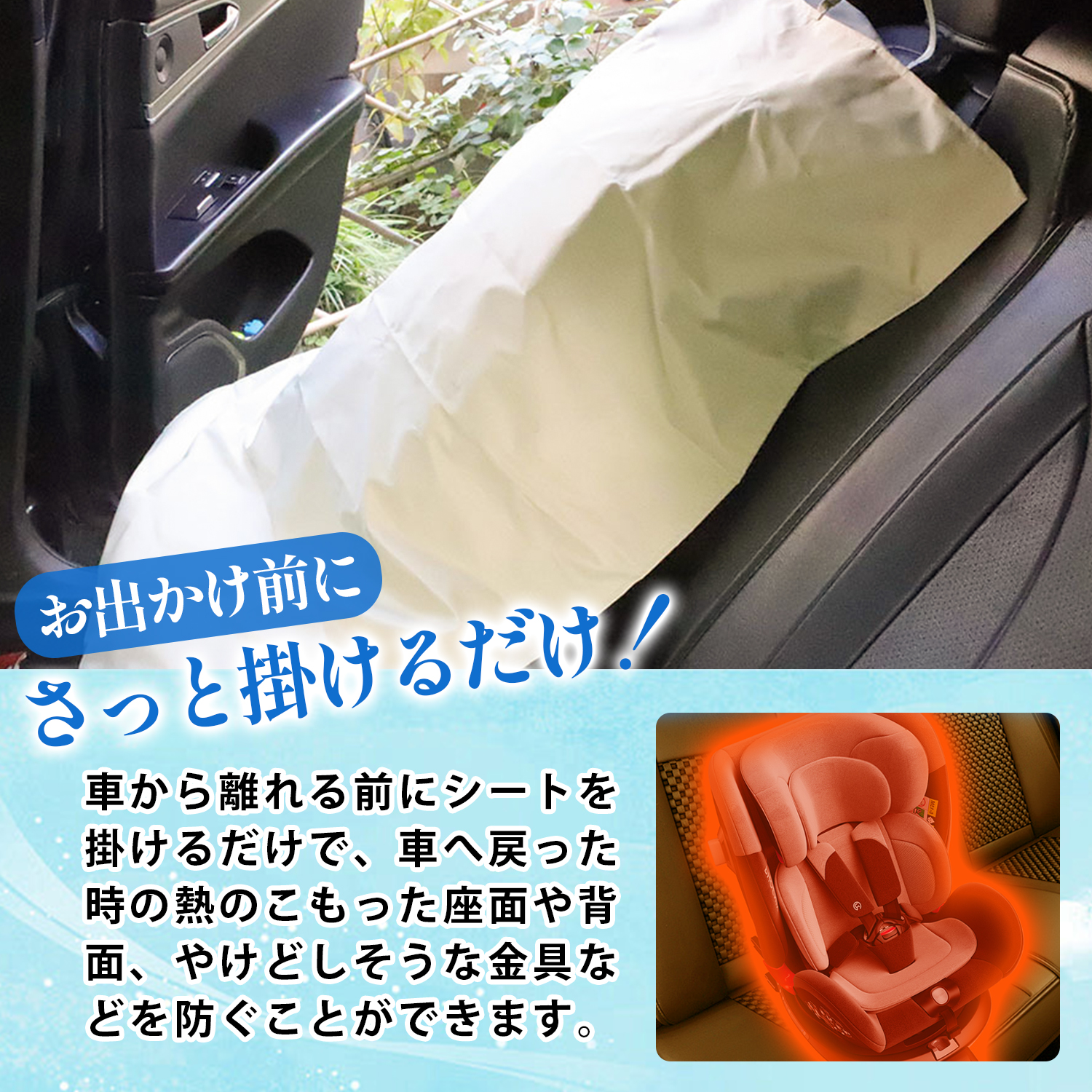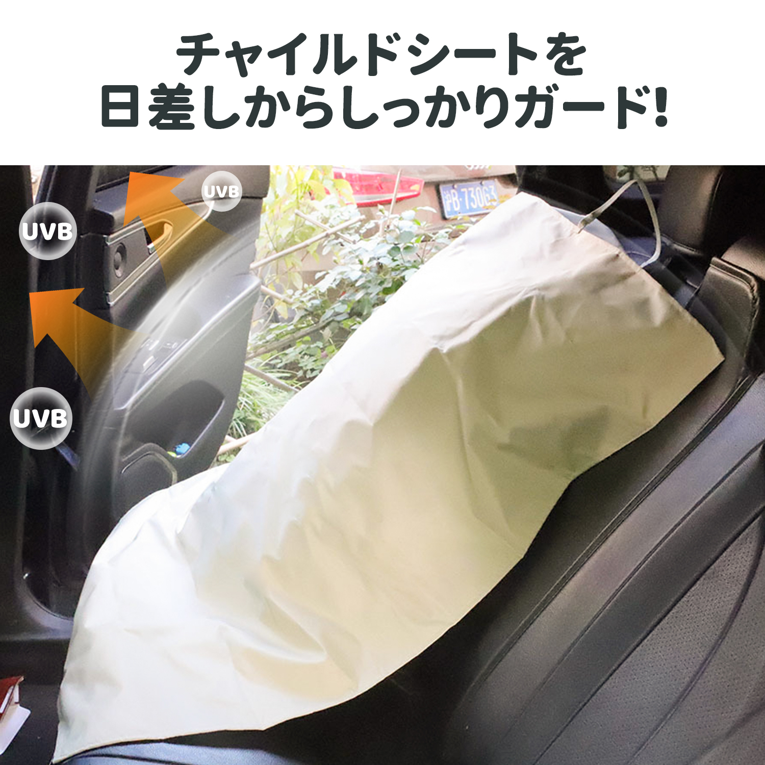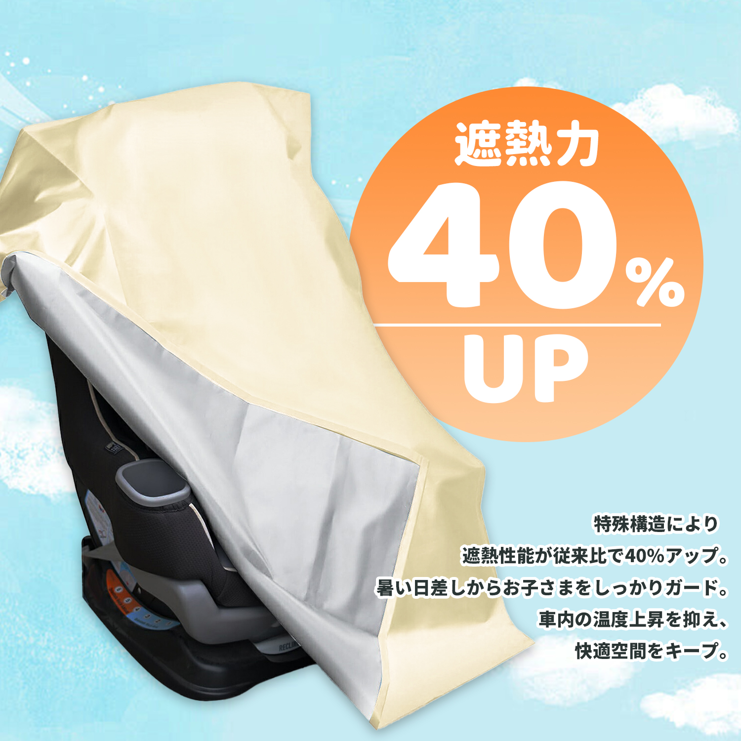 真夏の車内は30分で50℃以上になることもあり、シートや金具が高温に。このシート専用の遮熱&UVカットカバーなら、熱から守り安心して乗車できます。