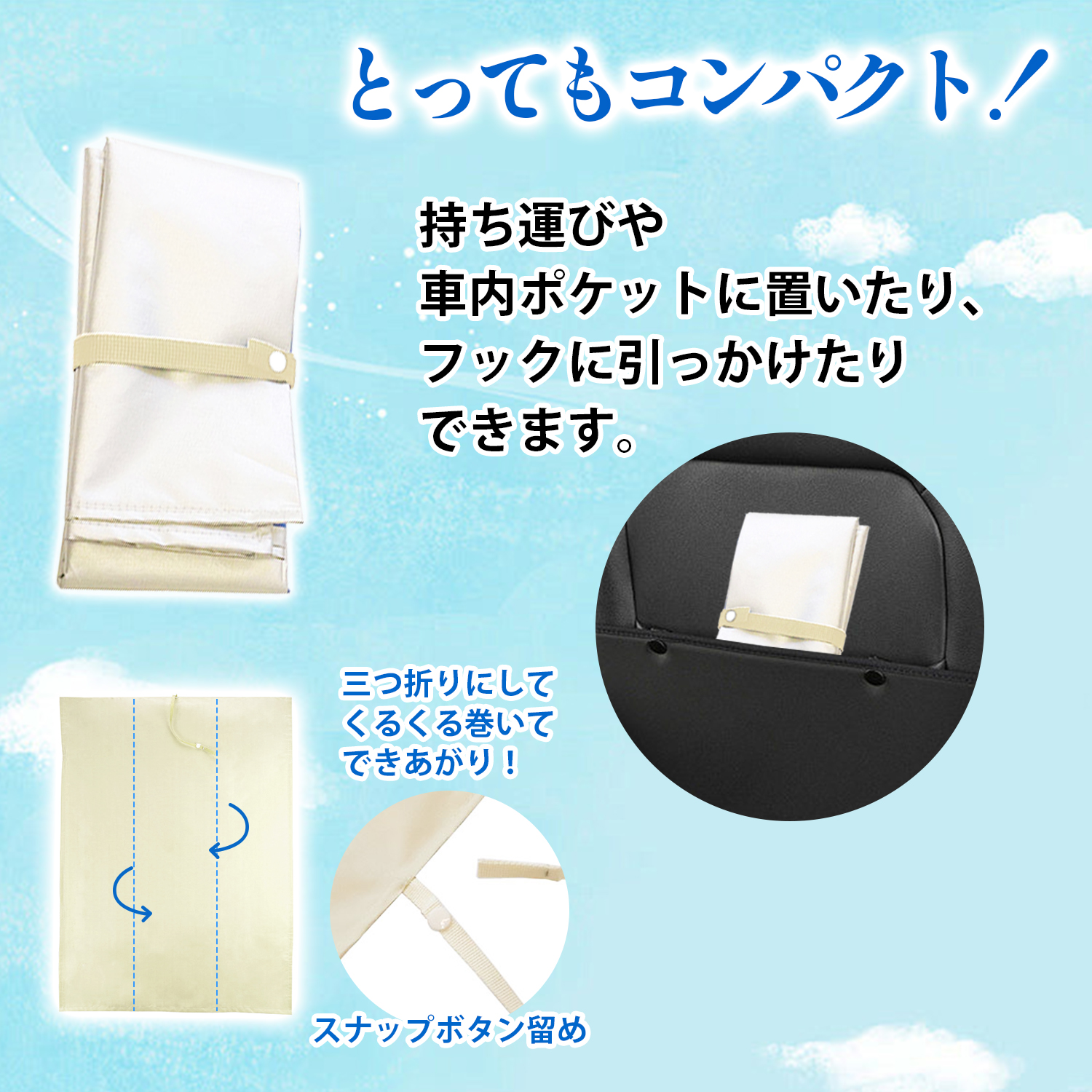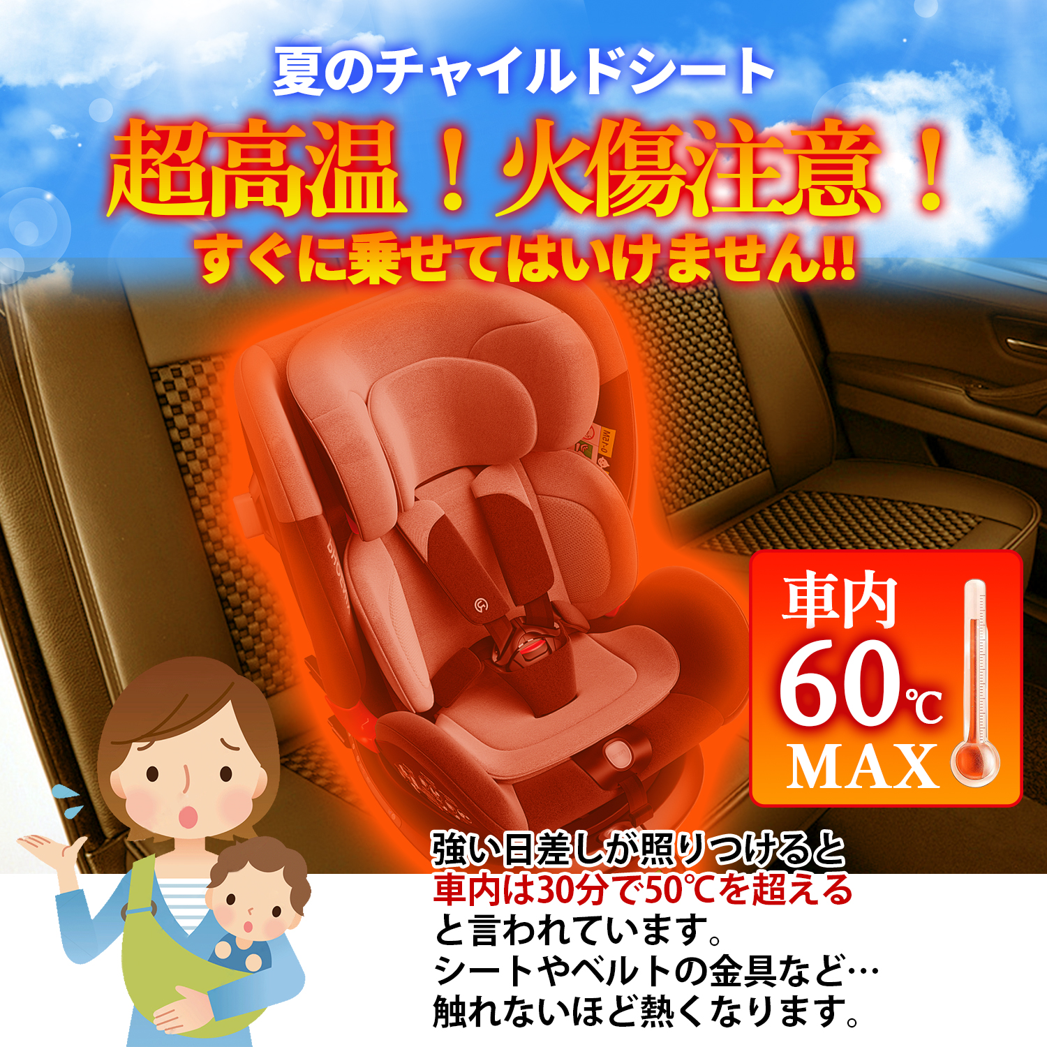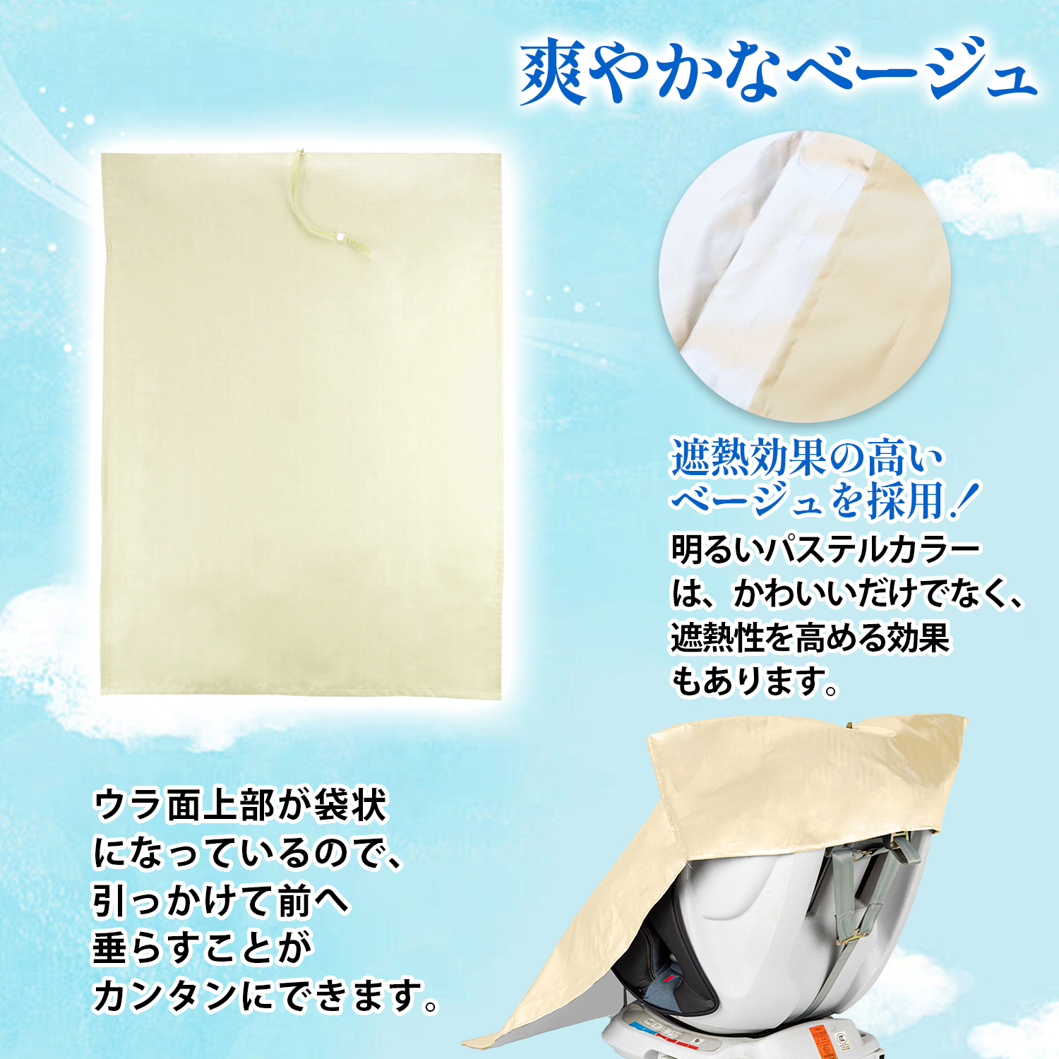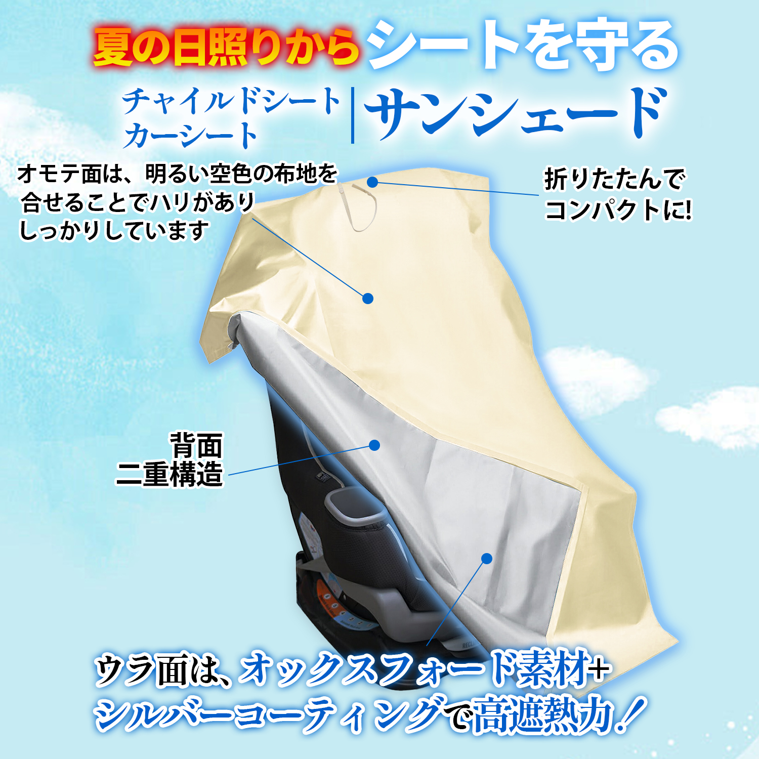 真夏の車内は30分で50℃以上になることもあり、シートや金具が高温に。このシート専用の遮熱&UVカットカバーなら、熱から守り安心して乗車できます。