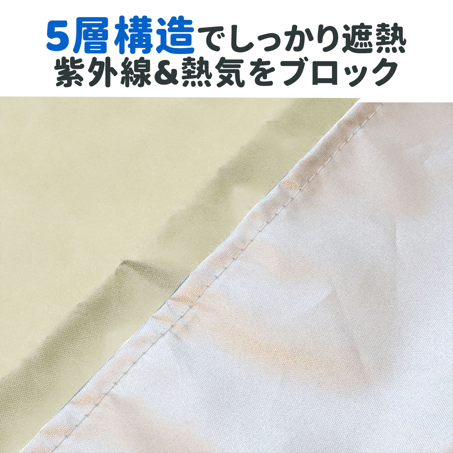特殊な5層構造で従来品より遮熱性能が約40%向上。熱気と紫外線を効果的に遮断します。