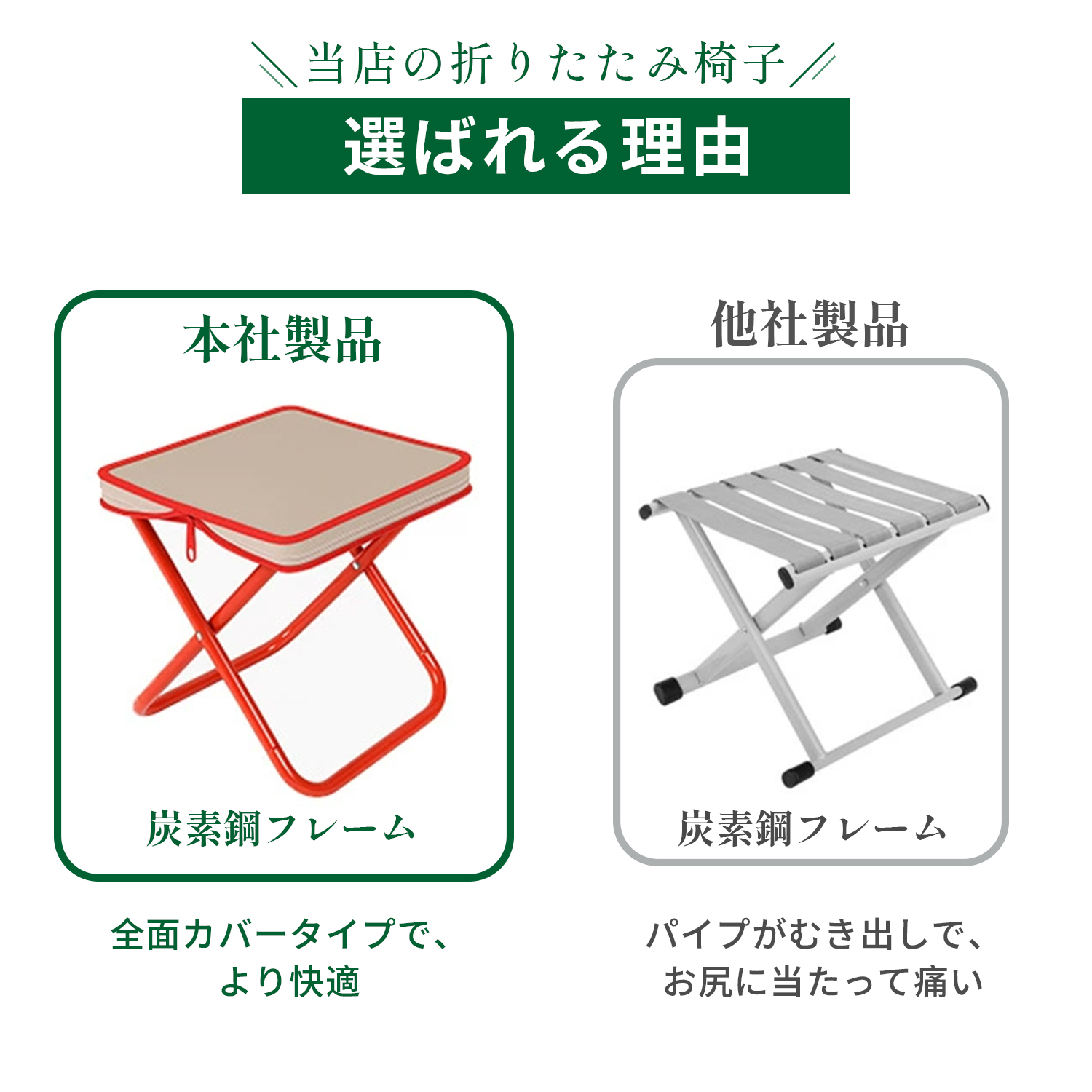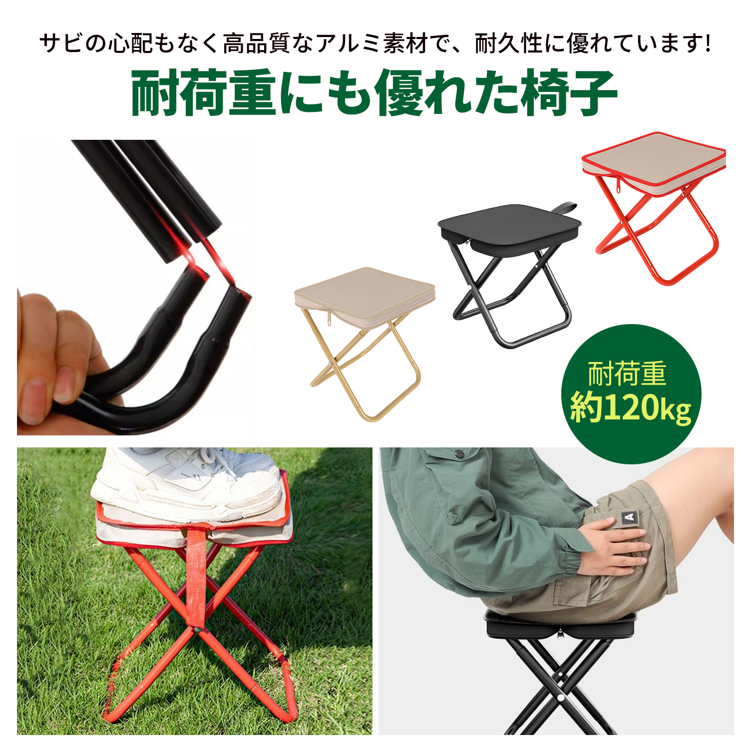 2.高級炭素鋼フレーム採用で120kgまで耐える強度。