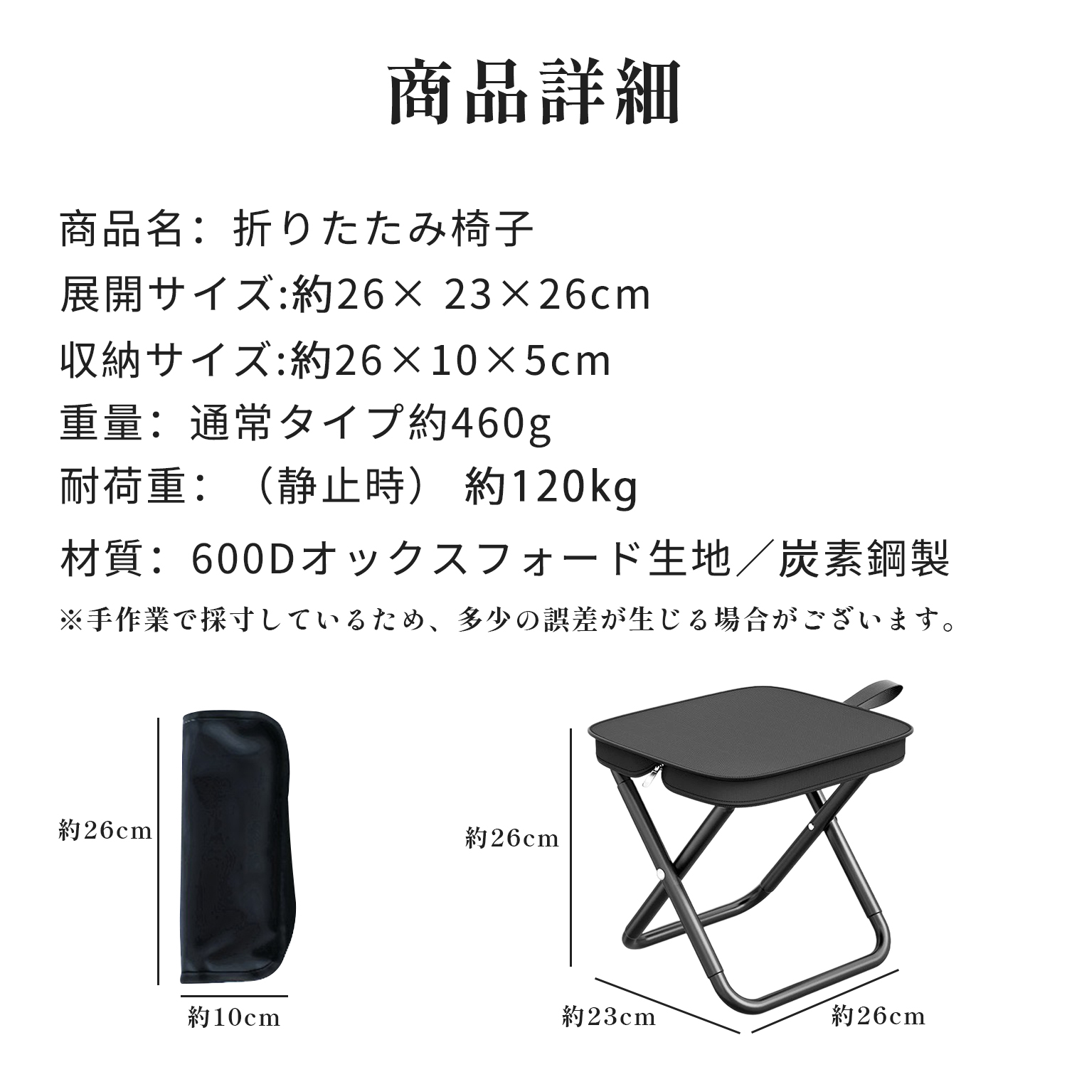 素材:600Dオックスフォード生地、炭素鋼フレーム