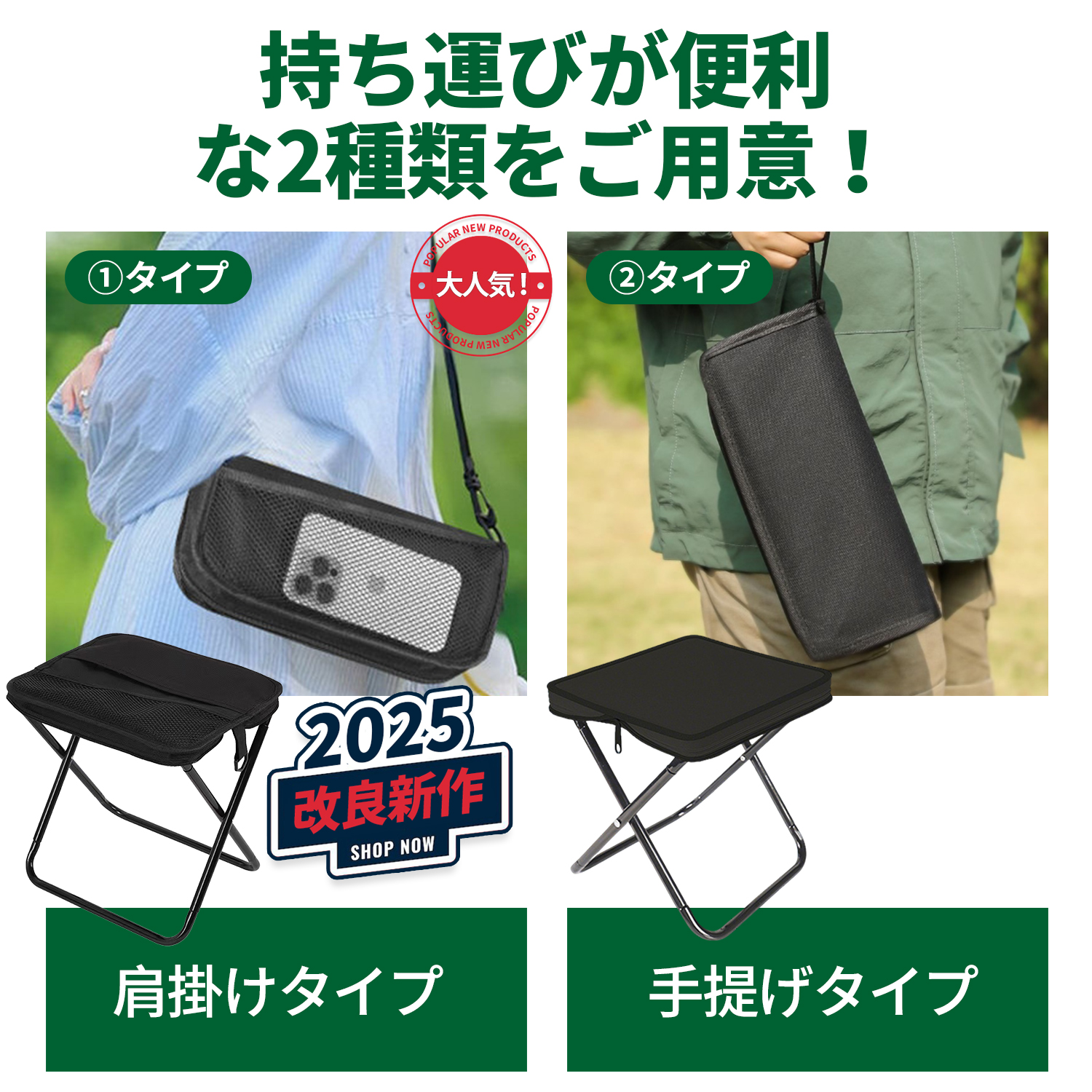 折りたたみ椅子 アウトドア チェア 手提げ&肩掛け 収納簡単ポータブル持ち運び コンパクトチェア 瞬間収納3色展開 高耐久瞬間収納 ポータブル ミニチェア