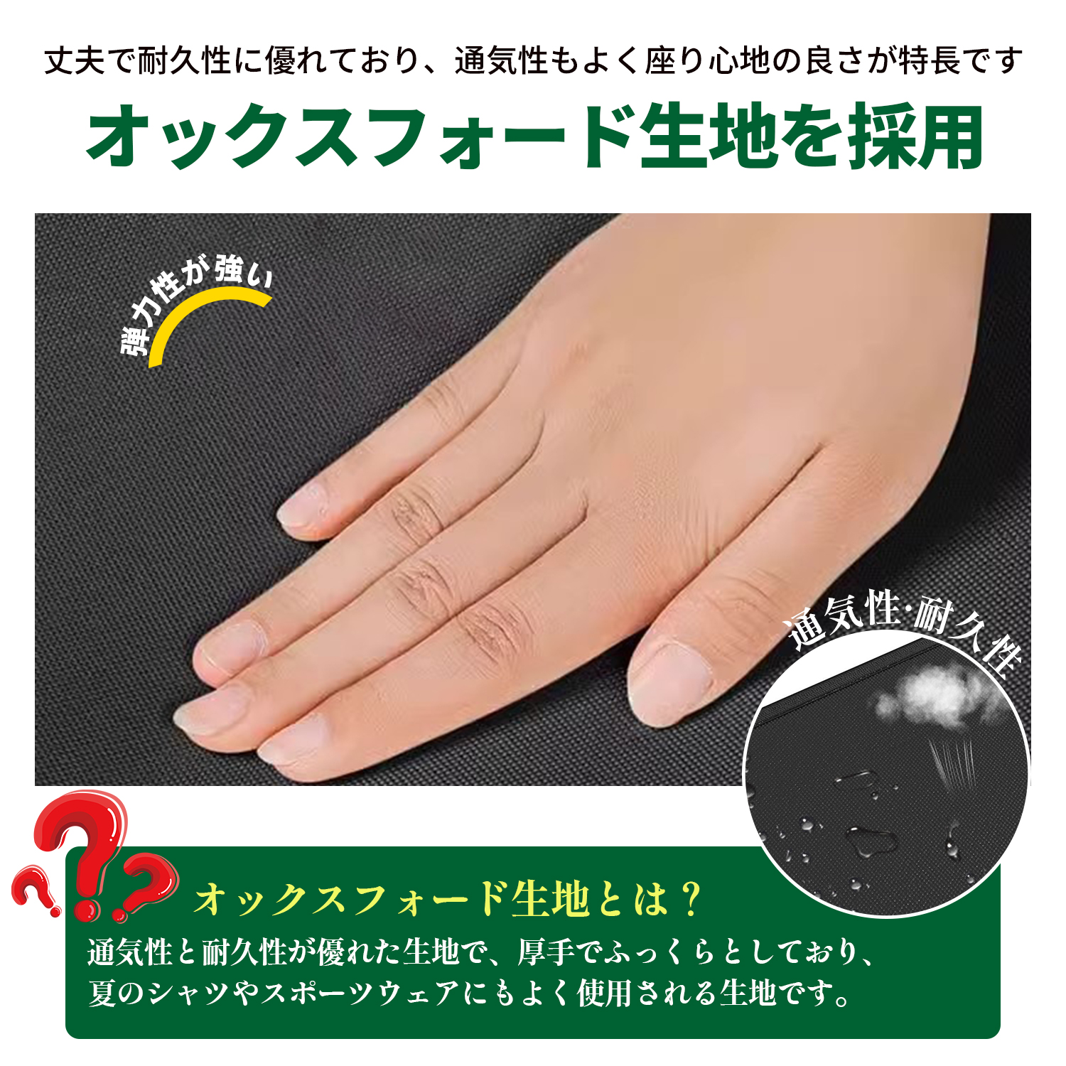 5.高級オックスフォード生地で通気性と耐久性を両立。夏も冬も快適。