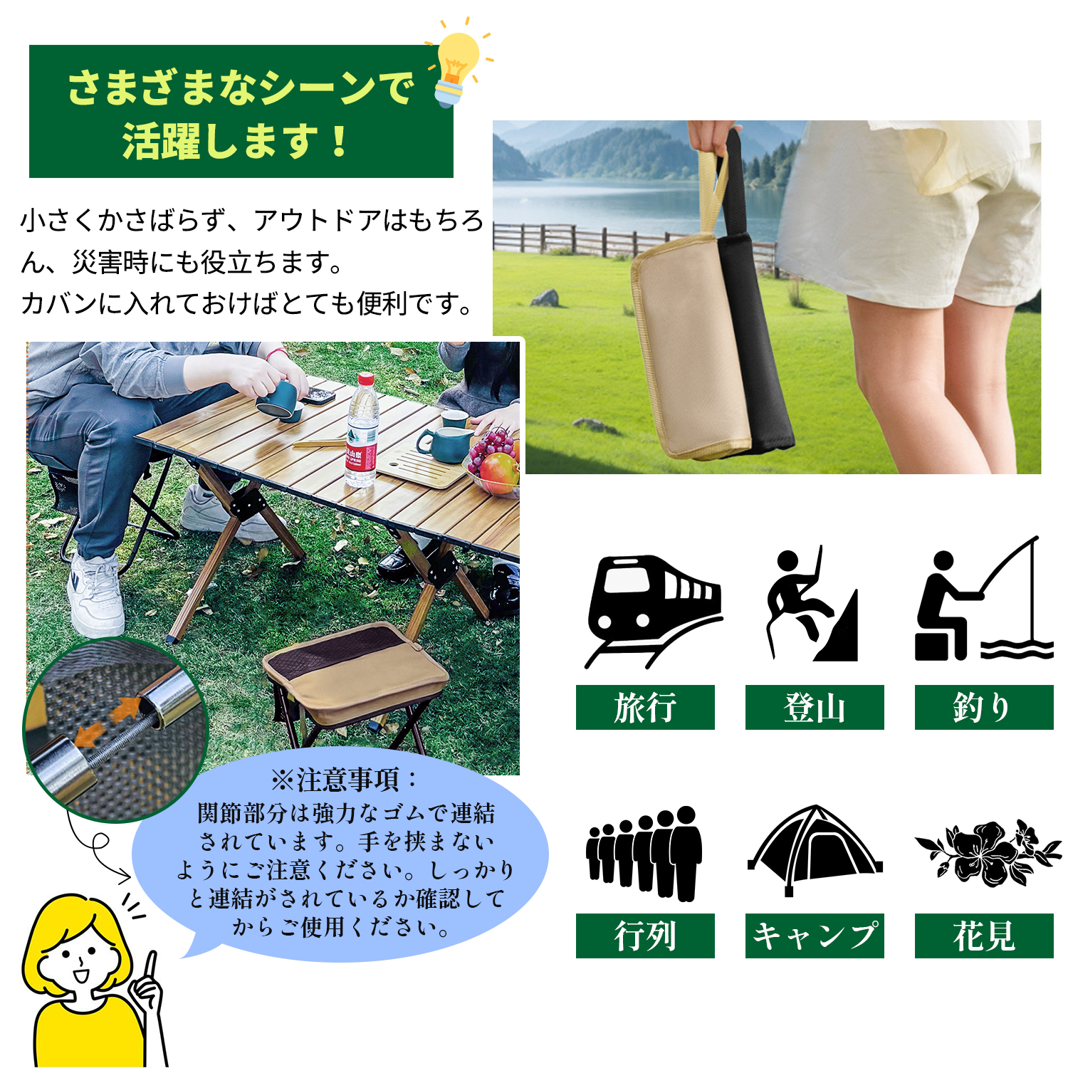 5.キャンプ、釣り、花見、災害時など幅広く活躍。