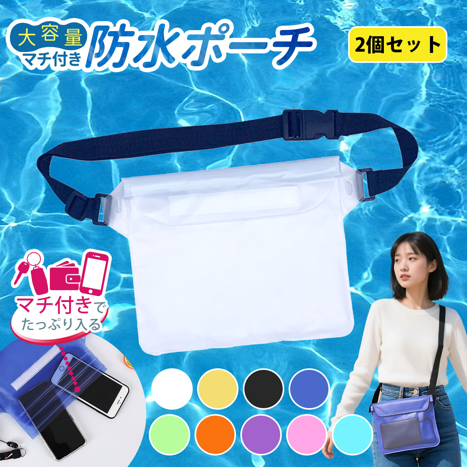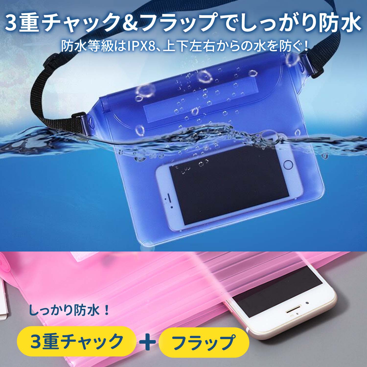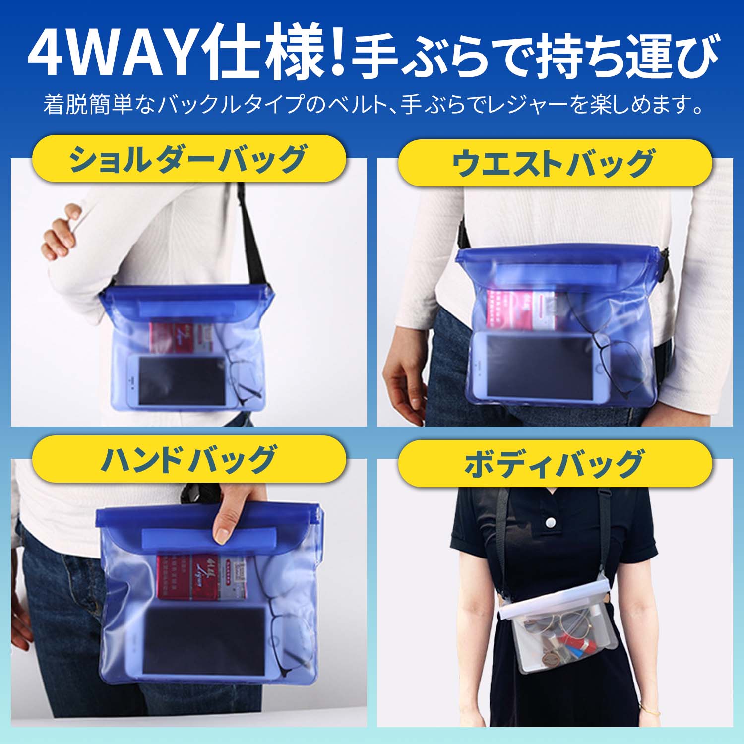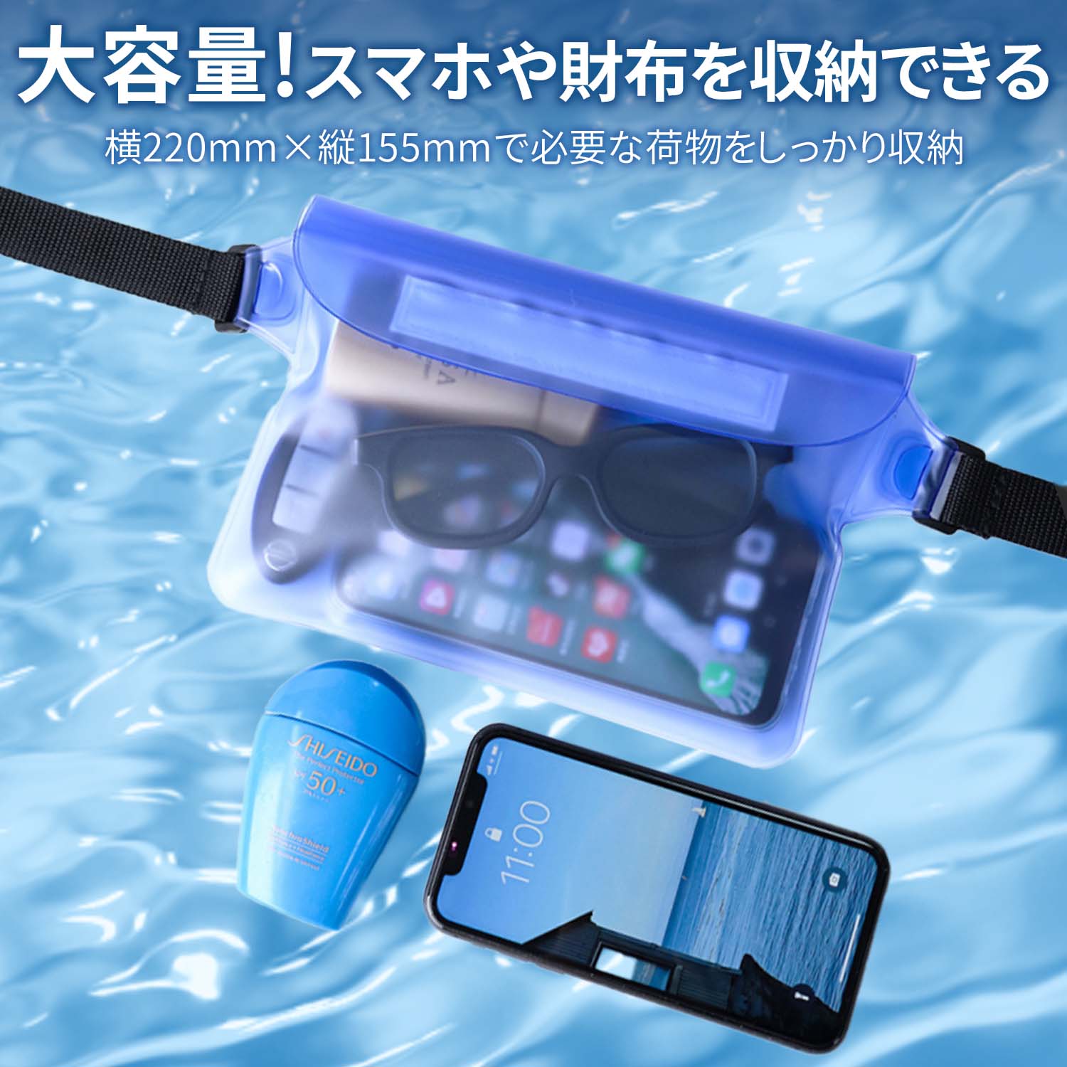 スマホ防水ケース 防水ポーチ IPX8 大容量 浮く 多機能 4WAY ショルダー ウエスト防水ケース ボディバッグ プール 海水浴 旅行 アウトドア全機種対応 2点セット
