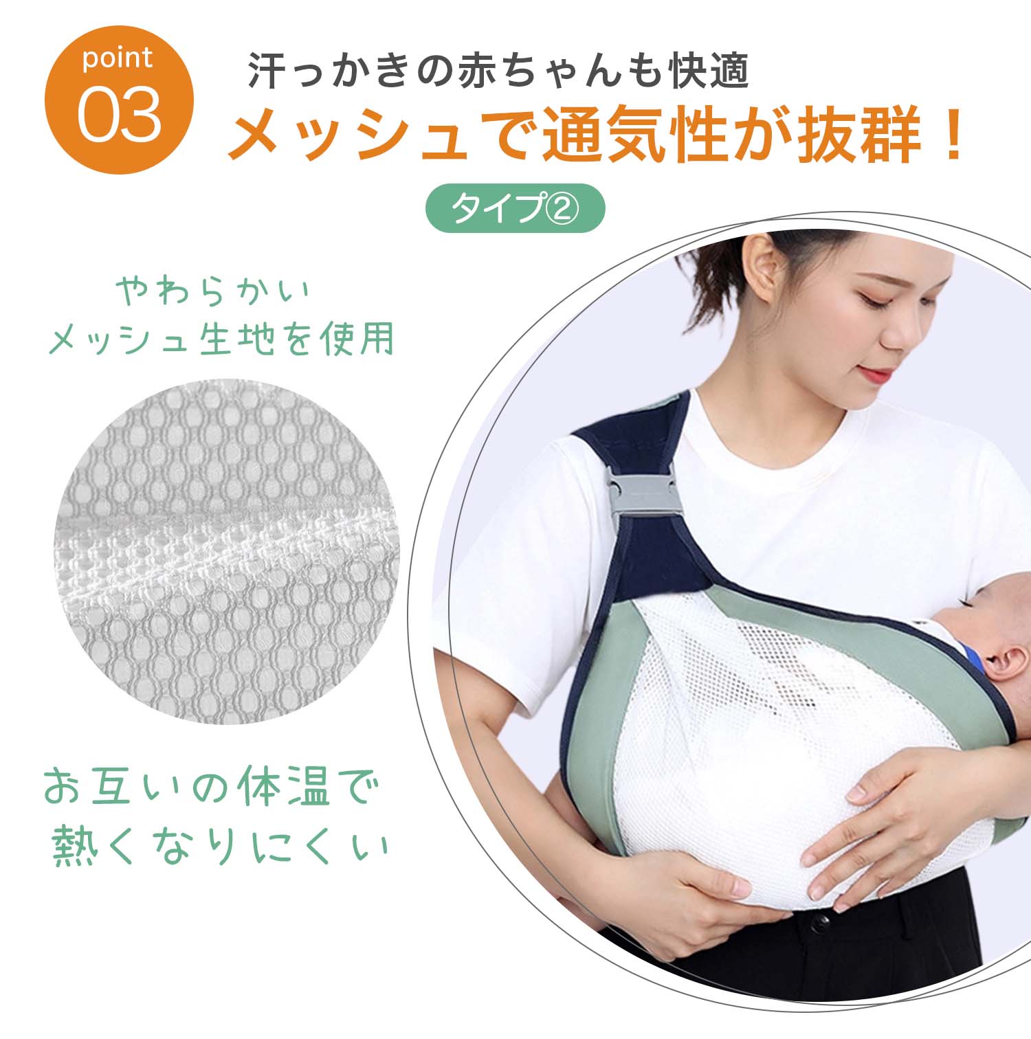 ベビースリング横抱きだっこひも 新生児 前向き抱 抱っこひも パパママ兼用 夏用 子供用 股関節サポート 軽量メッシュ コンパクト折りたたみ 片手だっ