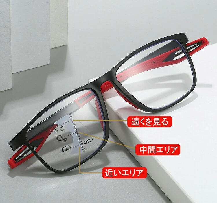 近距離はレンズ下部、中距離は中央、遠距離は上部を使用。度数は一・〇〜四・〇まで〇・五刻みで選択可能。