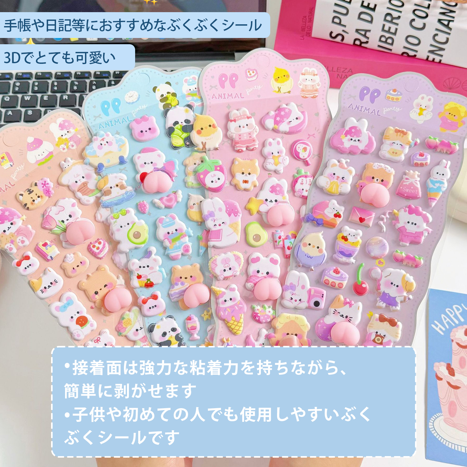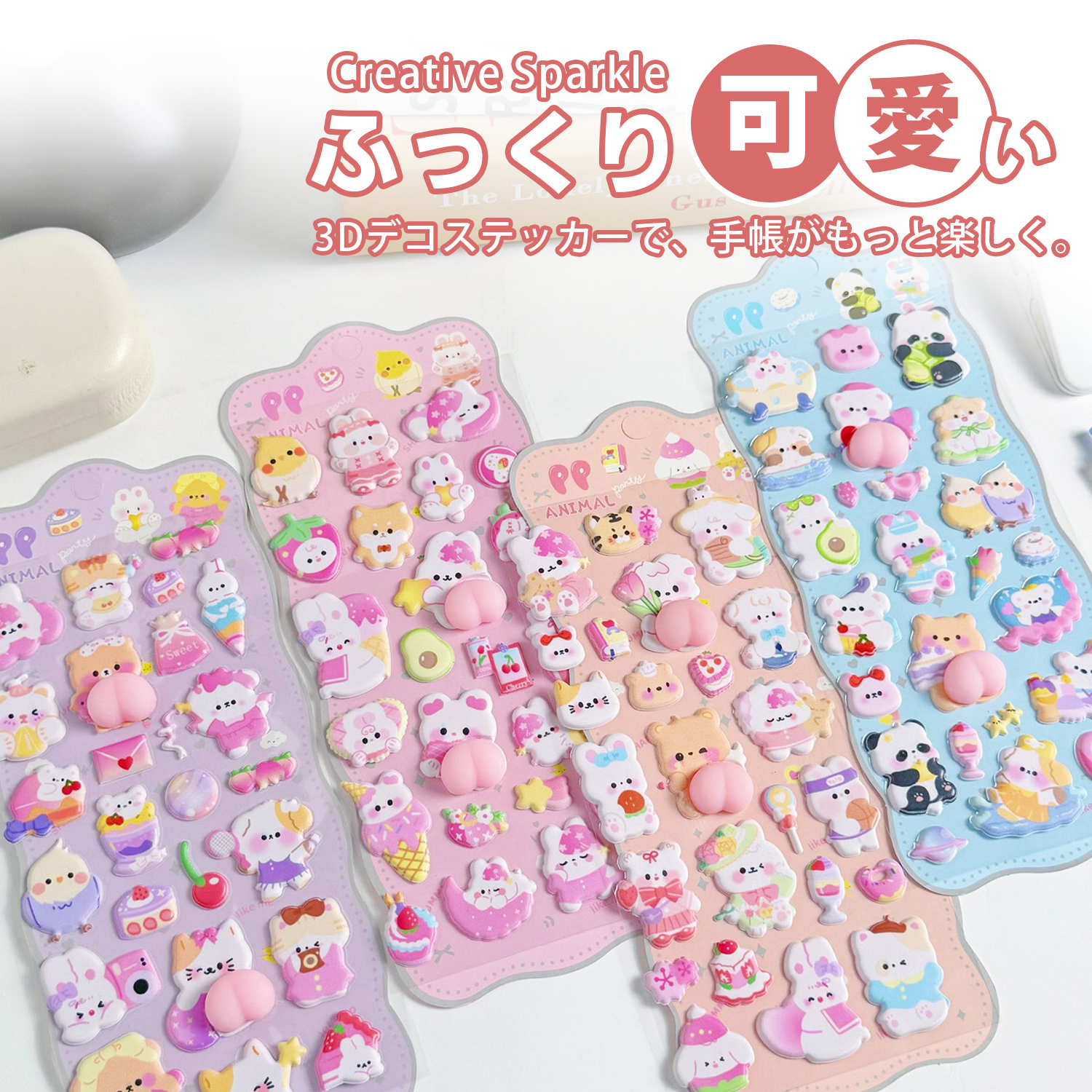 ふっくらした3D立体デザインで、触り心地の良い癒し系シール。
