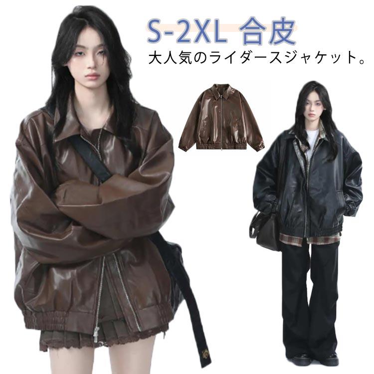 春秋 ブルゾン レザー レディース ライダースジャケット 長袖 合皮 フェイクレザー レザー 防寒 アウター 前開き ジャンパー 上着 カジュアル ジ