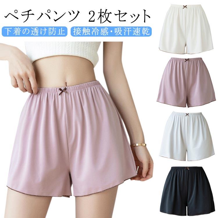 ペチパンツ スカート インナーパンツ 速乾 ワンピース 肌着 下着 キュロットパンツ 【2枚セット】 透け防止 接触冷感 ショート リボン かわいい