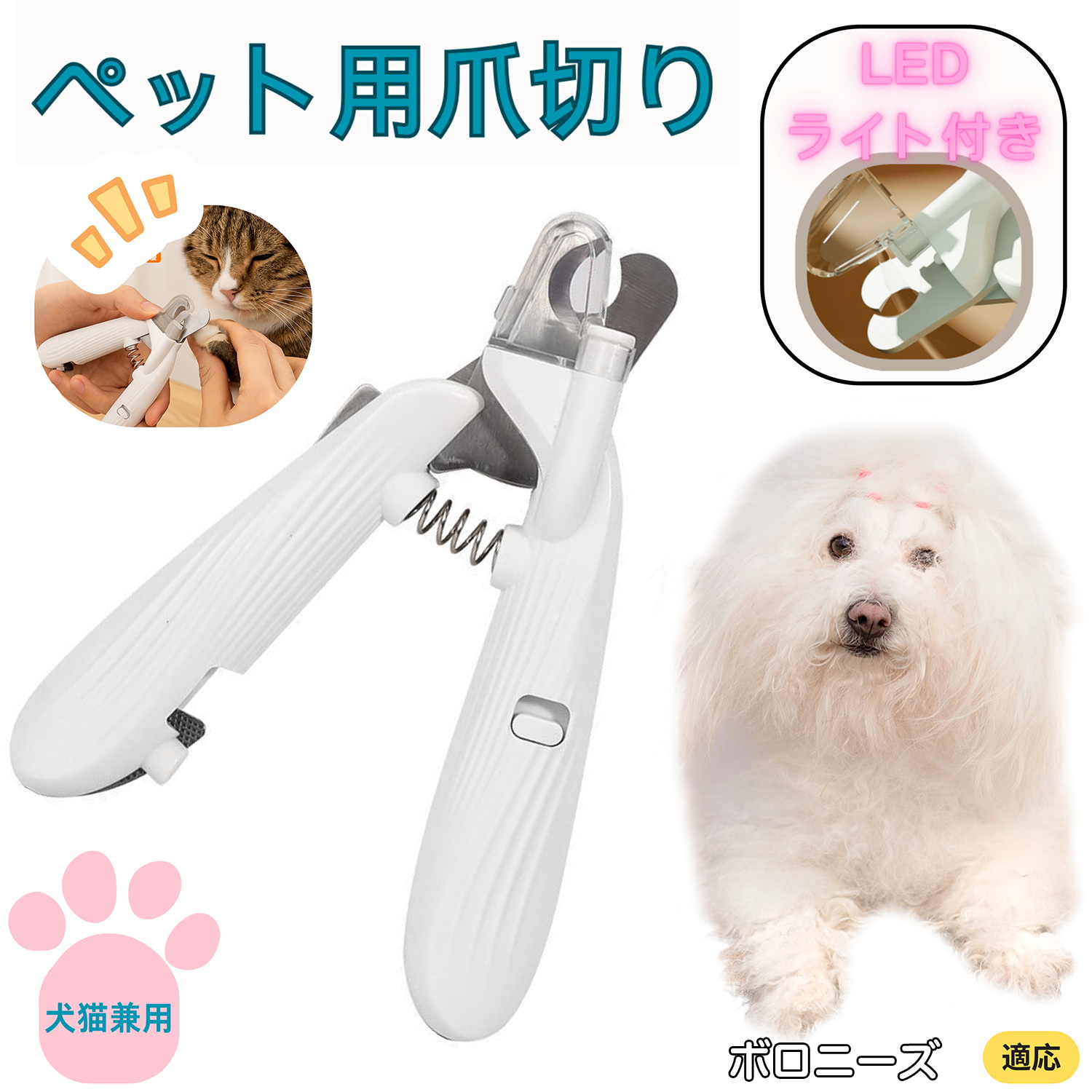 猫 犬 ペット 爪切り 猫用 犬用 ペット用 爪切り 血管ライン LED ライト グッズ ネコ ねこ 初心者 ボロニーズ犬種 ボロニーズ