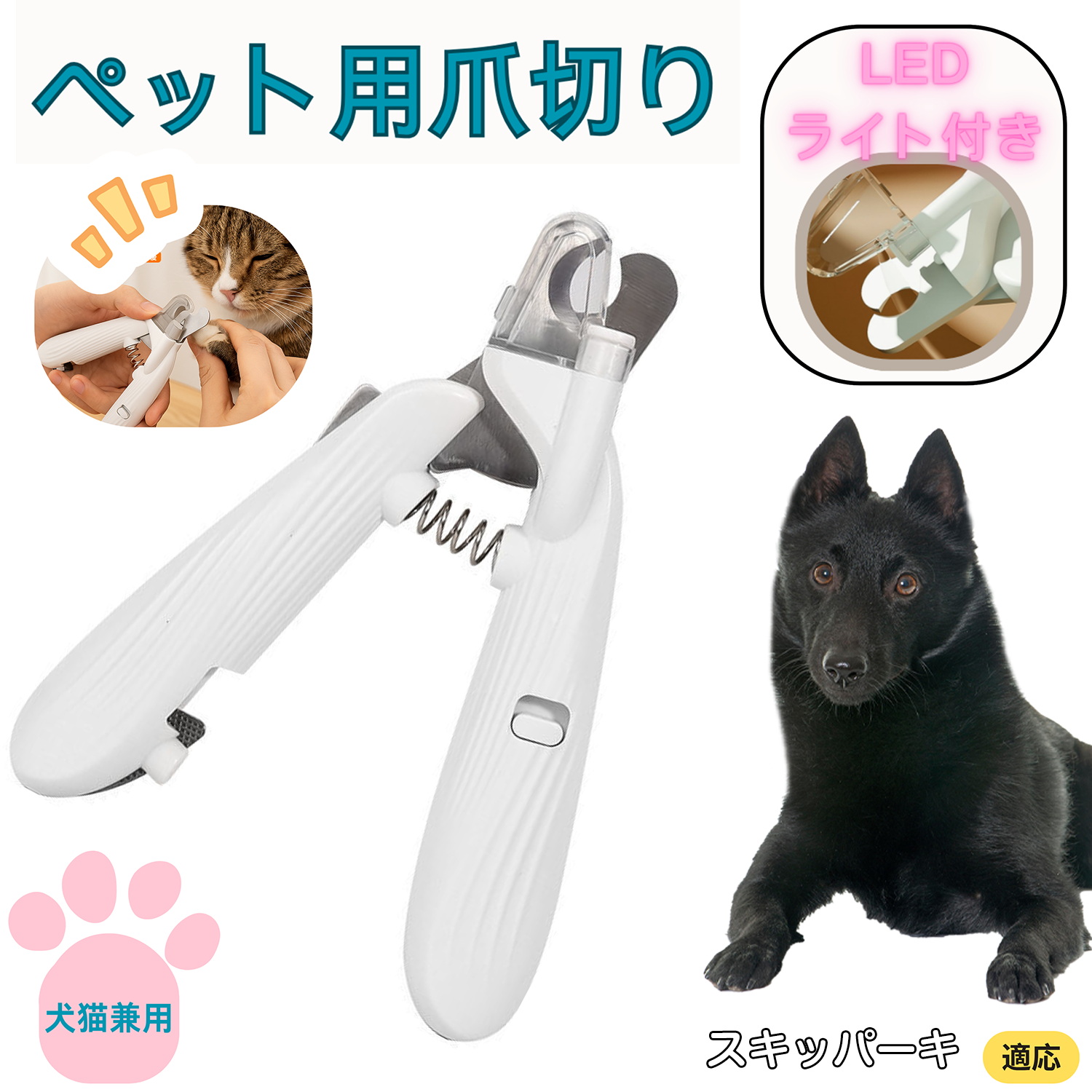 猫 犬 ペット 爪切り 猫用 犬用 ペット用 爪切り 血管ライン LED ライト グッズ ネコ ねこ 初心者 スキッパーキ犬 スキッパー