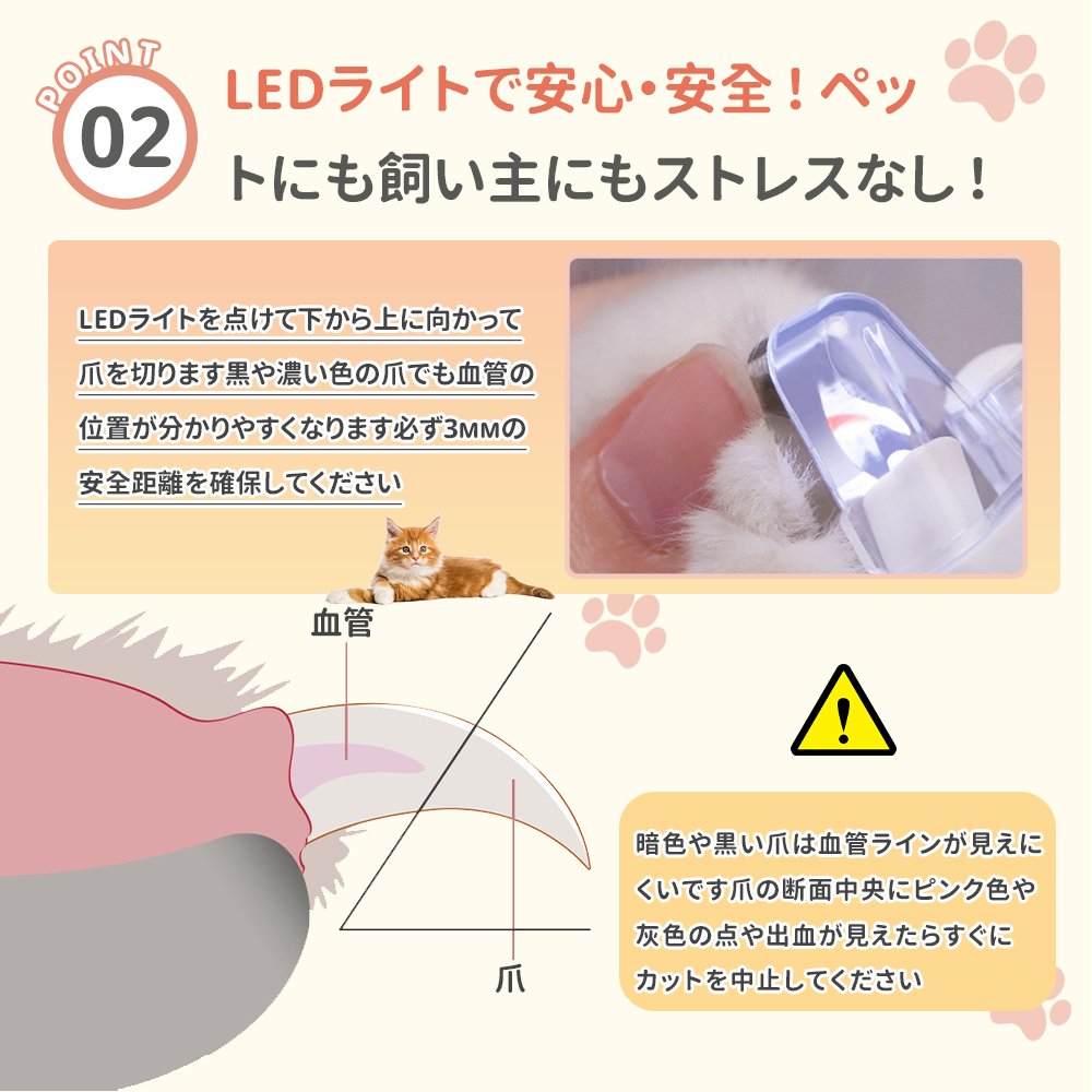 猫 犬 ペット 爪切り 猫用 犬用 ペット用 爪切り 血管ライン LED ライト グッズ ネコ ねこ 初心者 ミニチュアピンシャー犬 ミニピン