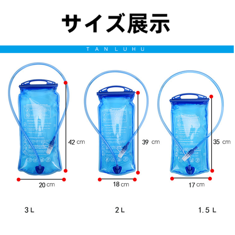 ハイドレーション 給水袋 1.5L/2L/3.0L 水分補給 ウォーターキャリー 給水式 水筒 水分補給 ハイキング 登山 折りたたみ水筒 2L大容量 水袋 軽量