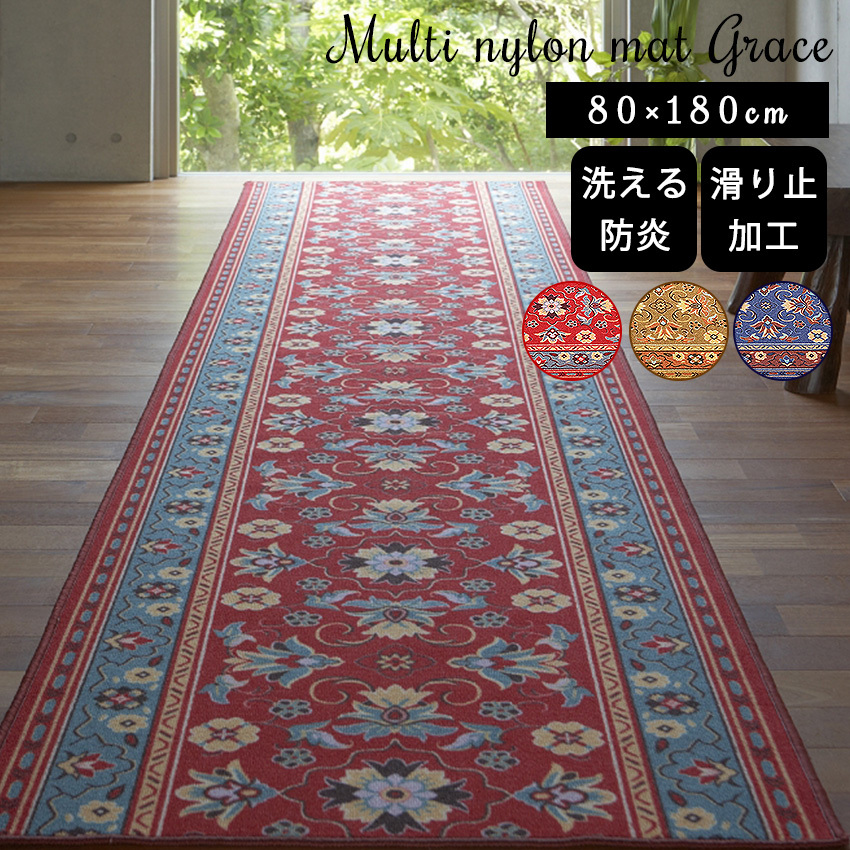 キッチンマット マット 廊下敷き 玄関マット 洗える 滑り止め グレイス 80×180cm 秋 冬