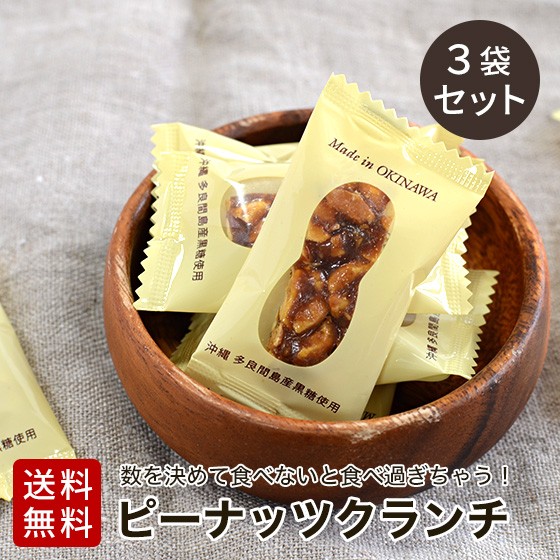 ピーナッツクランチ 60g 3袋セット 黒糖本舗垣乃花 送料無料 たっぷりピーナッツがこうばしい黒糖菓子