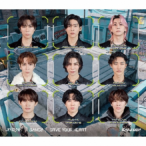 今作はグループ初となるトリプルA面シングル。 「BANG!!」は目黒蓮が主演を務める映画『SAKAMOTO DAYS』の主題歌。 抑えきれない衝動と愛=“弾丸”として、闇の中でも前へ進む覚悟を描いたアグレッシブなラブ・アンセム。 派手なドラム・ベースによるスリリングなビートと挑発的なフレーズが交錯し、 迷いや不条理を撃ち抜くように響くサウンドが印象的な1曲。 「守るものがあるからこそ強くなれる」そんな想いを乗せた歌詞にも注目。 「SAVE YOUR HEART」は宮舘涼太が主演を務める、テレビ朝日系ドラマ『ターミネーターと恋しちゃったら』の主題歌。 Snow Manが新たに挑戦する、愛を“プログラム”に見立てた近未来型ラブソングであり、 “大切な人を守り抜く、そのためにここに来た”という、ドラマにも準えた強い決意と衝動を、 クールでエッジの効いたサウンドに乗せて描く、Snow Man流のダンス・ナンバー。 「オドロウゼ!」は佐久間大介が主演を務める映画『スペシャルズ』の主題歌。 誰もが抱えている日常に渦巻く不安や疲れを軽やかに吹き飛ばし、笑って踊ることで前へ進もうと背中を押してくれる ポジティブなダンスチューン。 大変な毎日も、キミと、みんなとなら楽しい時間に変わっていく... そんな温かなメッセージを込めた、Snow Manの9人だからこそ歌える底抜けに明るいパーティーソングとなっている。 初回盤B付属DVDには「オドロウゼ!」「STARS」のMusic Video、「オドロウゼ!」マルチアングル映像、 「オドロウゼ!」「STARS」「ジャケット写真撮影」のメイキング映像、 撮りおろし特典映像「“Dome Tour 2025-2026 ON”お疲れ様会」と、各形態盛りだくさんの映像コンテンツを収録予定。 |